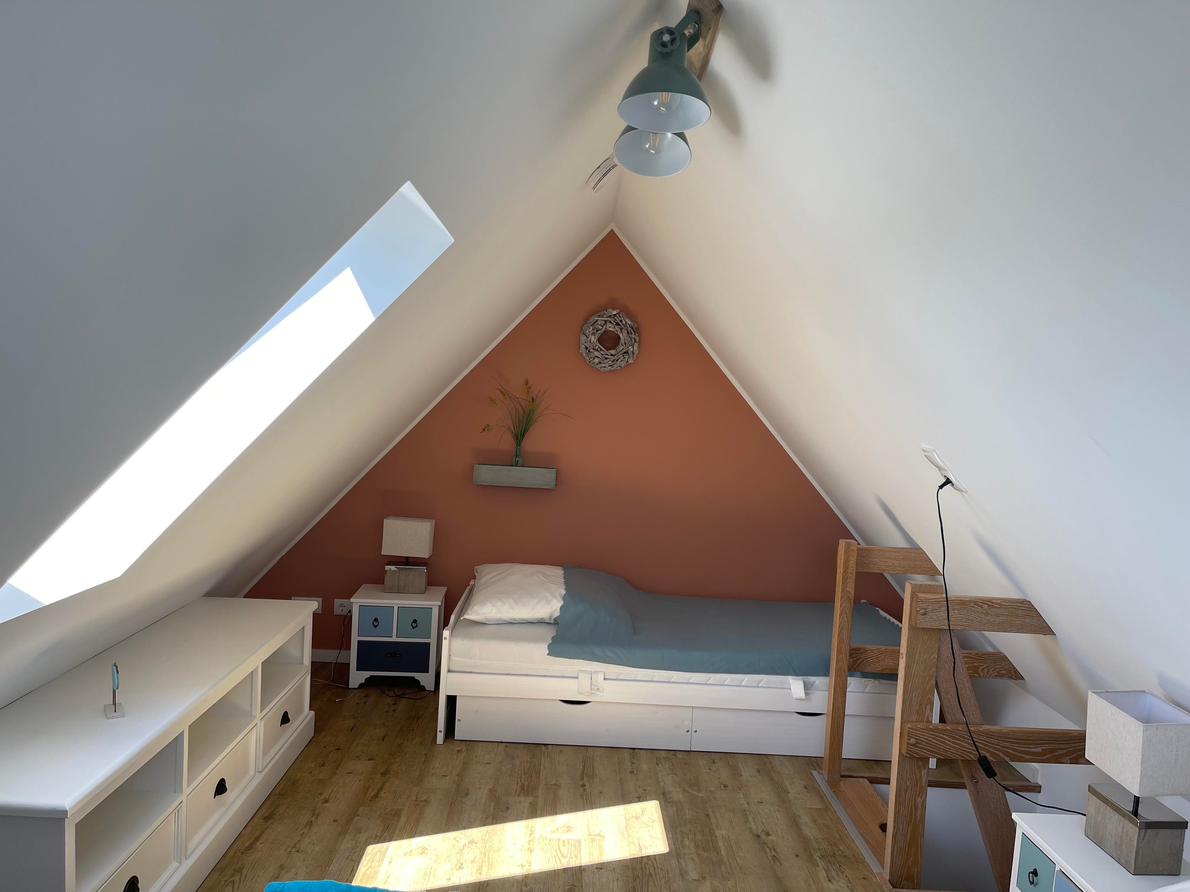 Ferien-Doppelhaushälfte 15 (80 m²) für bis zu 8 Personen im Erd-/Obergeschoss und Spitzboden (Zugang über eine steile Treppe)