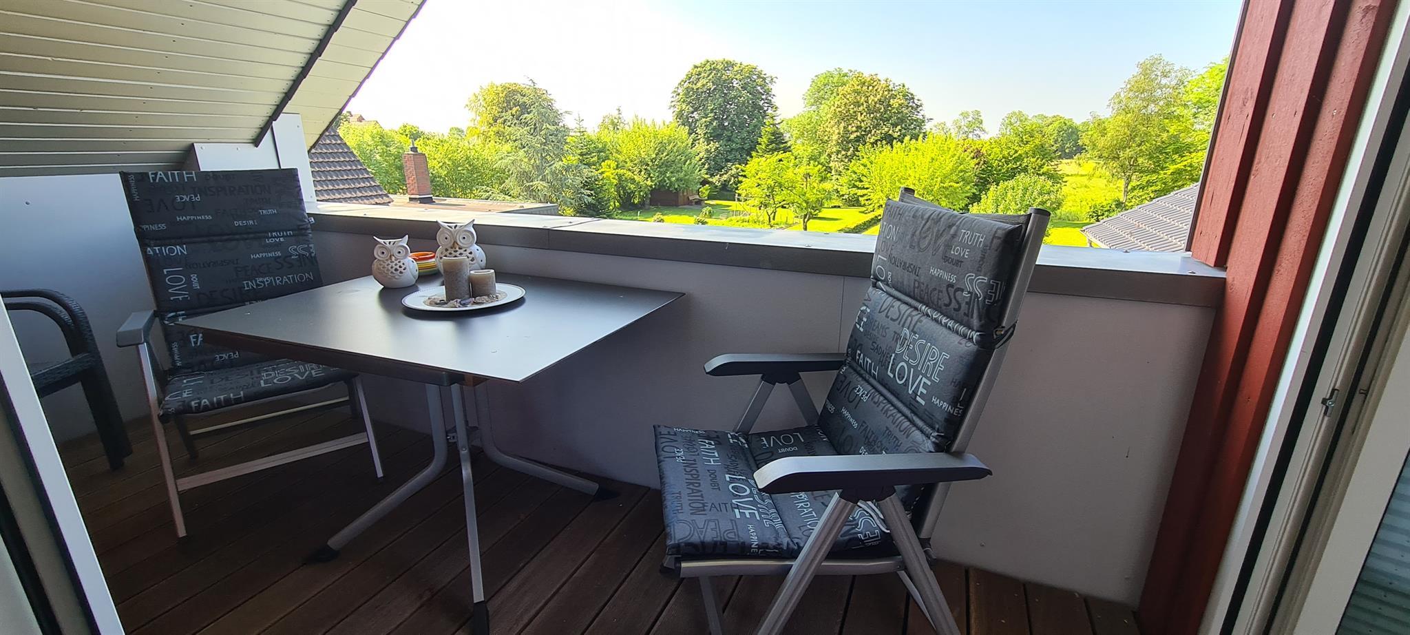 Die sehr gut ausgestattete Ferienwohnung Wiggers liegt im Obergeschoss und hat ein gemütliches Wohnzimmer mit Wohnecke, TV und direktem Zugang auf den überdachten Balkon, eine gut ausgestatte Küche mit Küchenzeile (Backofen, Ceranfeld, Geschirrspüler, Kühlschrank, Kaffeemaschine, Wasserkocher und Toaster) und einem Esstisch, ein Doppelschlafzimmer mit Kleiderschrank, ein Zweibettzimmer mit Kleiderschrank, ein Bad mit Dusche (niedriger Einstieg), WC, Fön, Waschmaschine und Waschtisch. Im Garten finden Sie eine Terrasse mit Gartenmöbeln und einer Liegewiese. Eine Unterstellmöglichkeit für mitgebrachte Fahrräder steht den Gästen zur Verfügung werden und ein Stellplatz für Ihr Fahrzeug ist vorhanden. Im Garten steht Ihnen ein Grill zur allgemeinen Nutzung zur Verfügung.