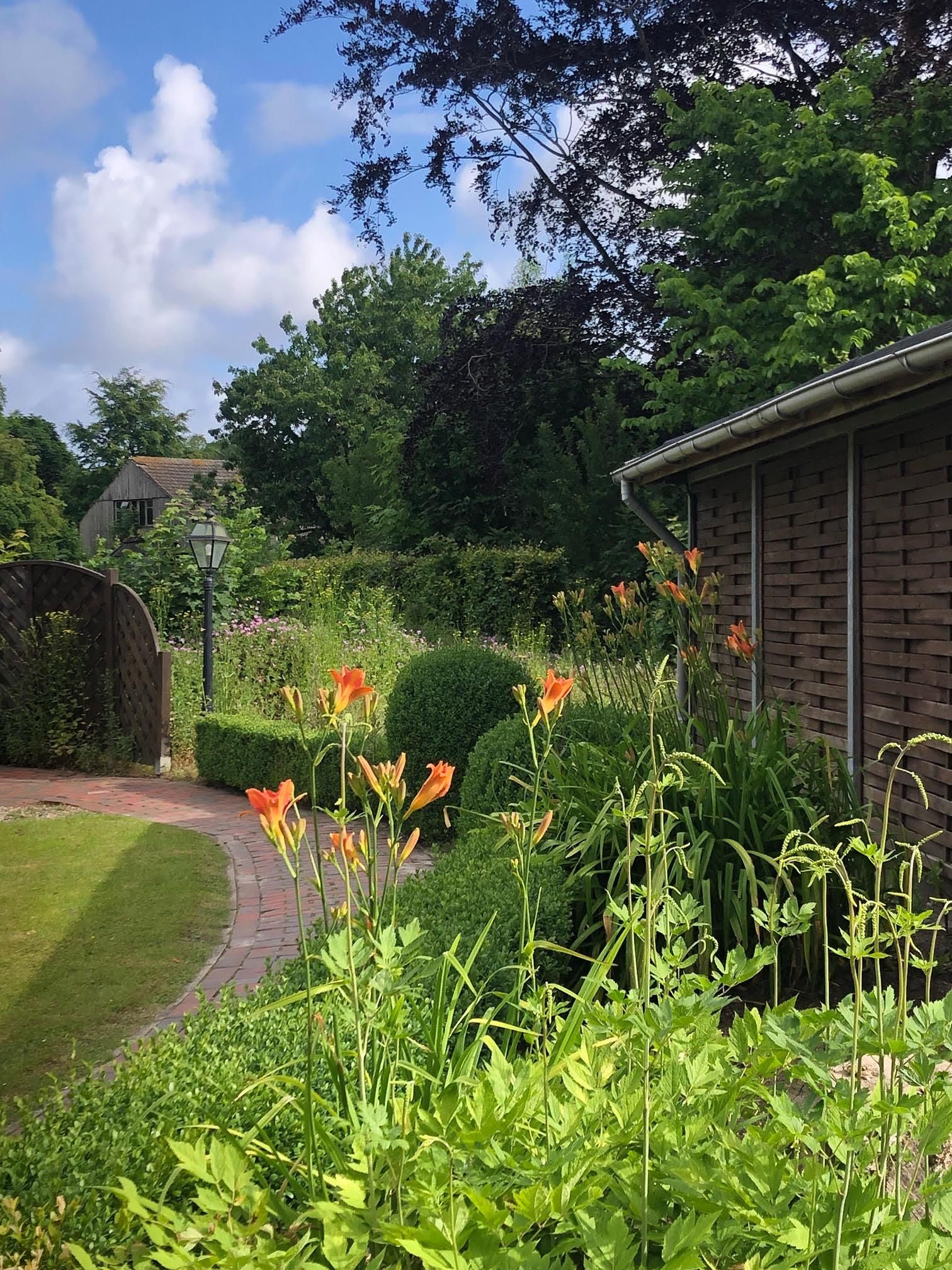 Bei schönem Wetter lädt die große Terrasse samt Strandkorb und Gartenmöbeln zum Ausspannen ein. Die Küche verfügt über alle üblichen E-Geräte samt Mikrowelle und ist auch sonst komplett ausgestattet mit allem, was den den Urlaub zur schönsten Zeit des Jahres macht. In der Wohnung steht eine kleine Auswahl an Urlaubsliteratur und Gesellschaftsspielen bereit. Das Gästehaus verfügt über WLAN.