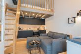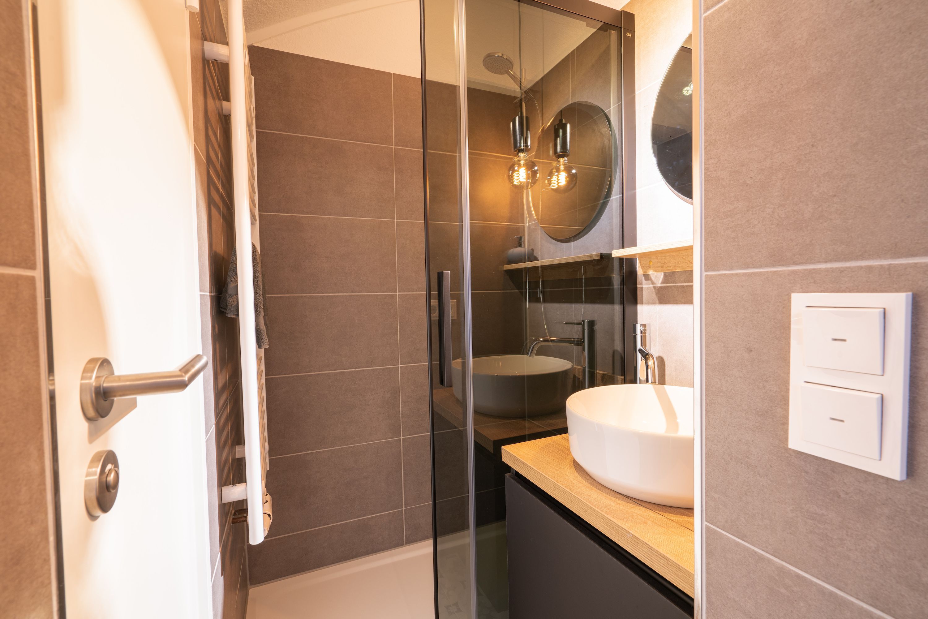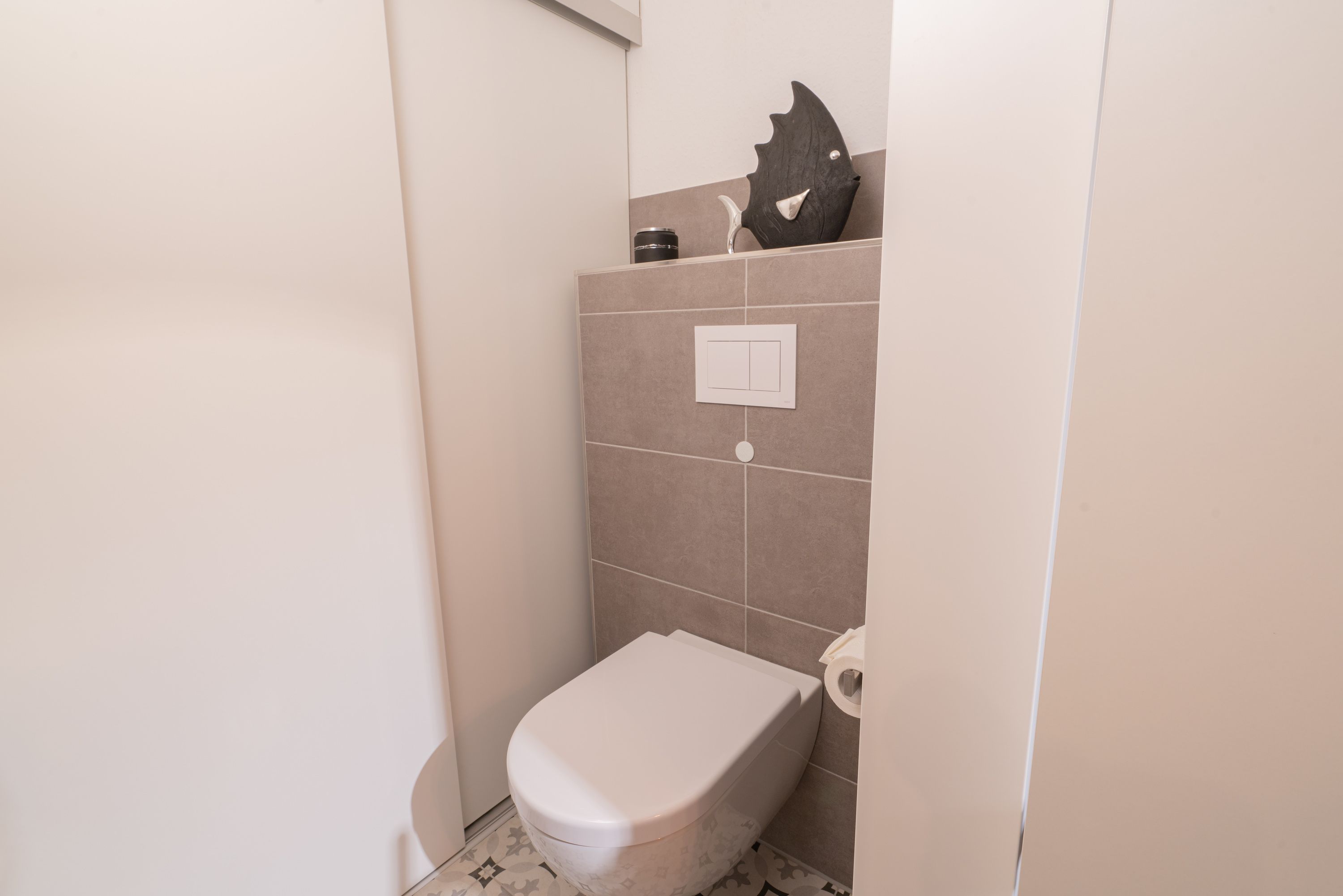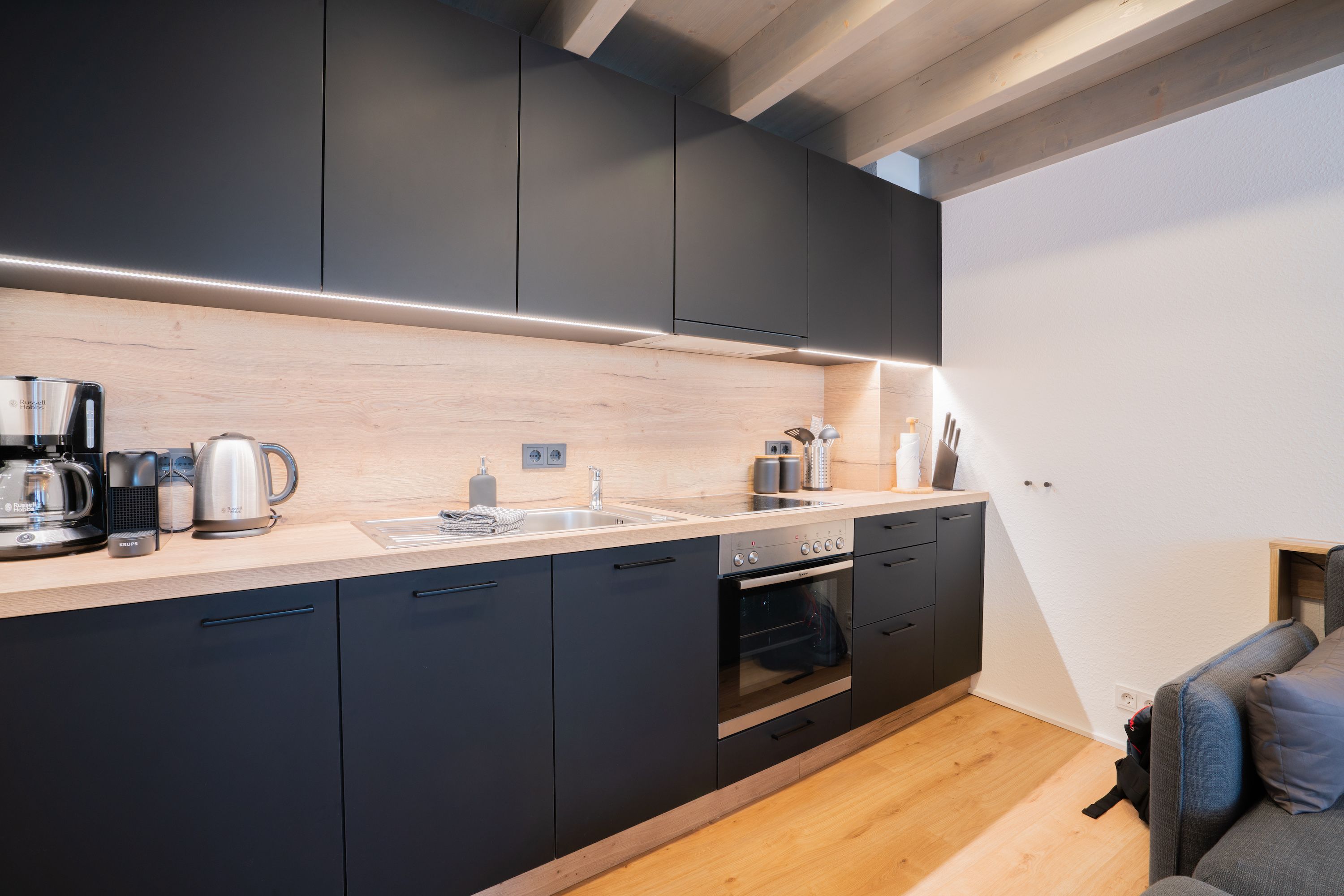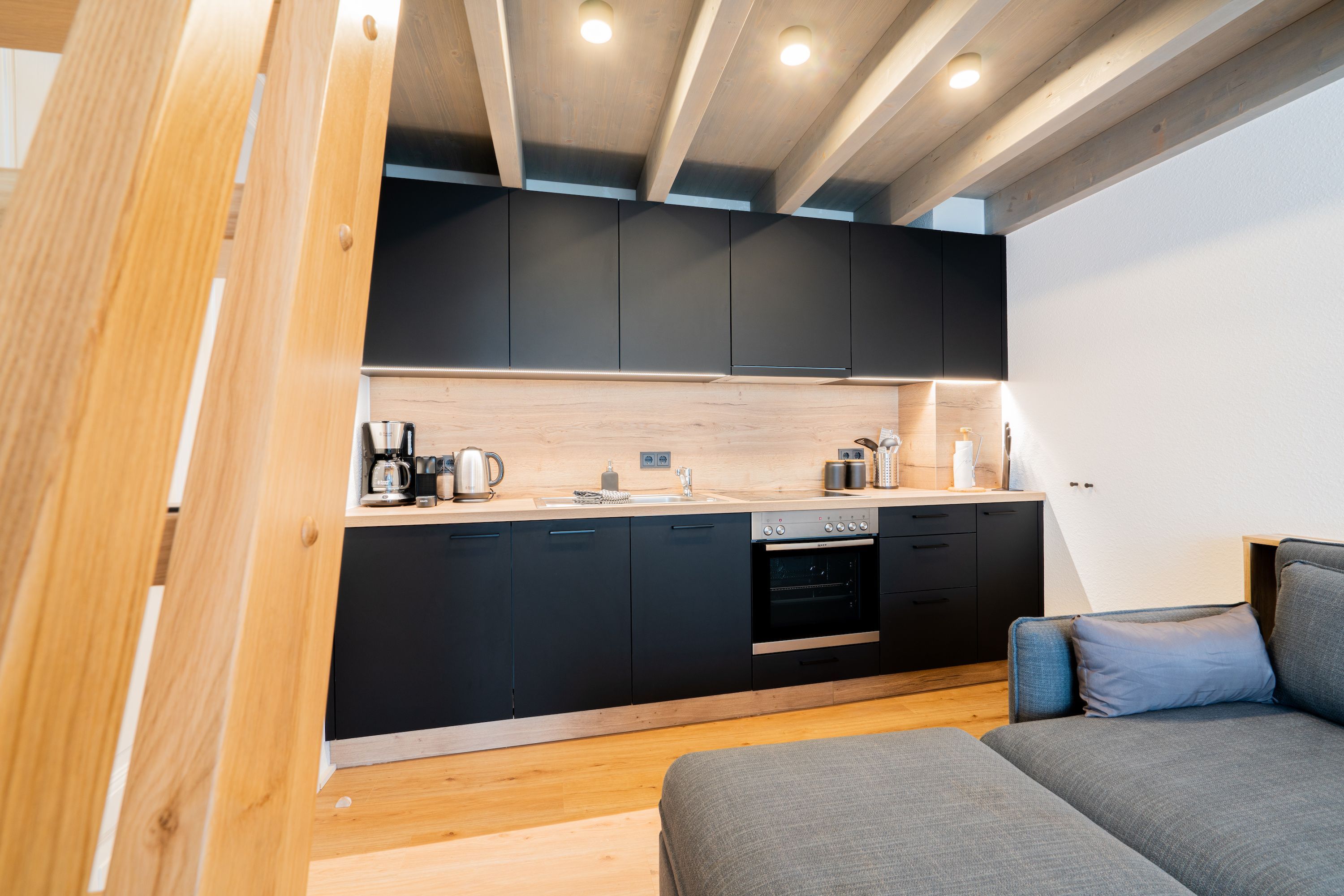 Die 42m2 große Ferienwohnung mein Meerchen wurde 2021 komplett saniert. Sie bietet ein gemütliches Urlaubserlebnis auf 4 Ebenen! Hinter der Eingangstür verbirgt sich der gemütliche Wohnbereich mit Couch, TV und angrenzender Küchenzeile. Ein echtes Highlight des Apartements ist das individuell eingebaute Hochbett im Wohnbereich. Zu diesem gelangen Sie über eine feste Treppe (Kinder sollten mindestens 6 Jahre bzw. kletterfest sein). Dort gibt es zwei 80x200cm Matratzen und einen TV für gemütliche Ruhezeiten. Im Wohnbereich ist zudem eine kleine Empore als gemütlicher Lesesitz vor einem innenliegenden Fenster eingerichtet. Vom Wohnbereich geht es über eine Treppe (4 Stufen) in den Erker der Wohnung. Am geräumigen Esstisch kann man gemeinsam essen und durch die Fenster des Treiben auf der Friedrichstraße beobachten. Alternativ kann man natürlich mit geschlossenen Plissees die Zeit einfach unter sich geniessen. Das innenliegende Schlafzimmer erreichen Sie von dort über eine weitere Treppe. Dort gibt es ein Doppelbett (180x200cm) und einen dritten Fernseher. Von diesem Raum abgehend gibt es ein kleines Zimmerchen mit Kleiderschrank und ein klitzekleines Badezimmer durch die praktische Schiebetür (Spiegel) kann man auf Wunsch einen der beiden Räume schließen. Das kleine, moderne Duschbad bietet Waschbecken und Dusche. Von dort geht eine Tür zum WC mit Abstellraum ab. Durch den ungewöhnlichen Schnitt hat die Ferienwohnung mein Meerchen sehr viel Charme, ist aber eher für Familien mit Kindern oder Freunde, die sich sehr gut kennen, geeignet.