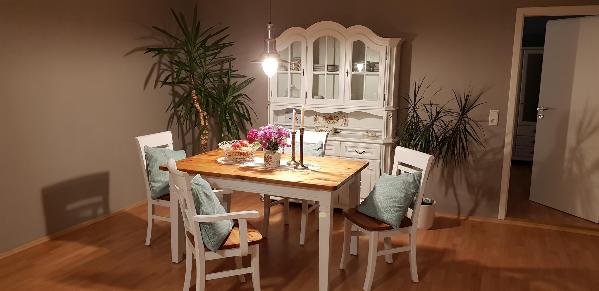 Unsere naturnahe Ferienhaushälfte wurde 2023 komplett renoviert und ist für unsere Gäste im Landhausstil modern und komfortabel eingerichtet.