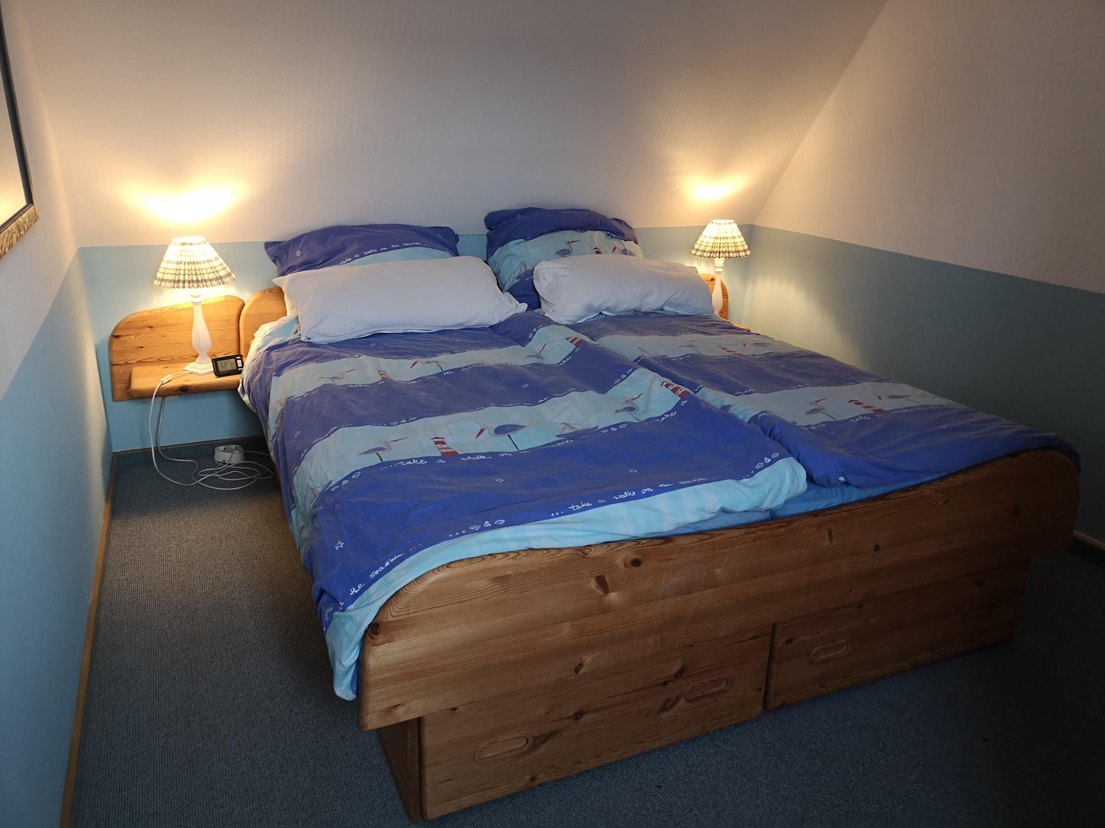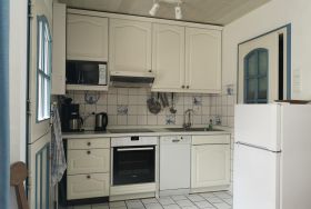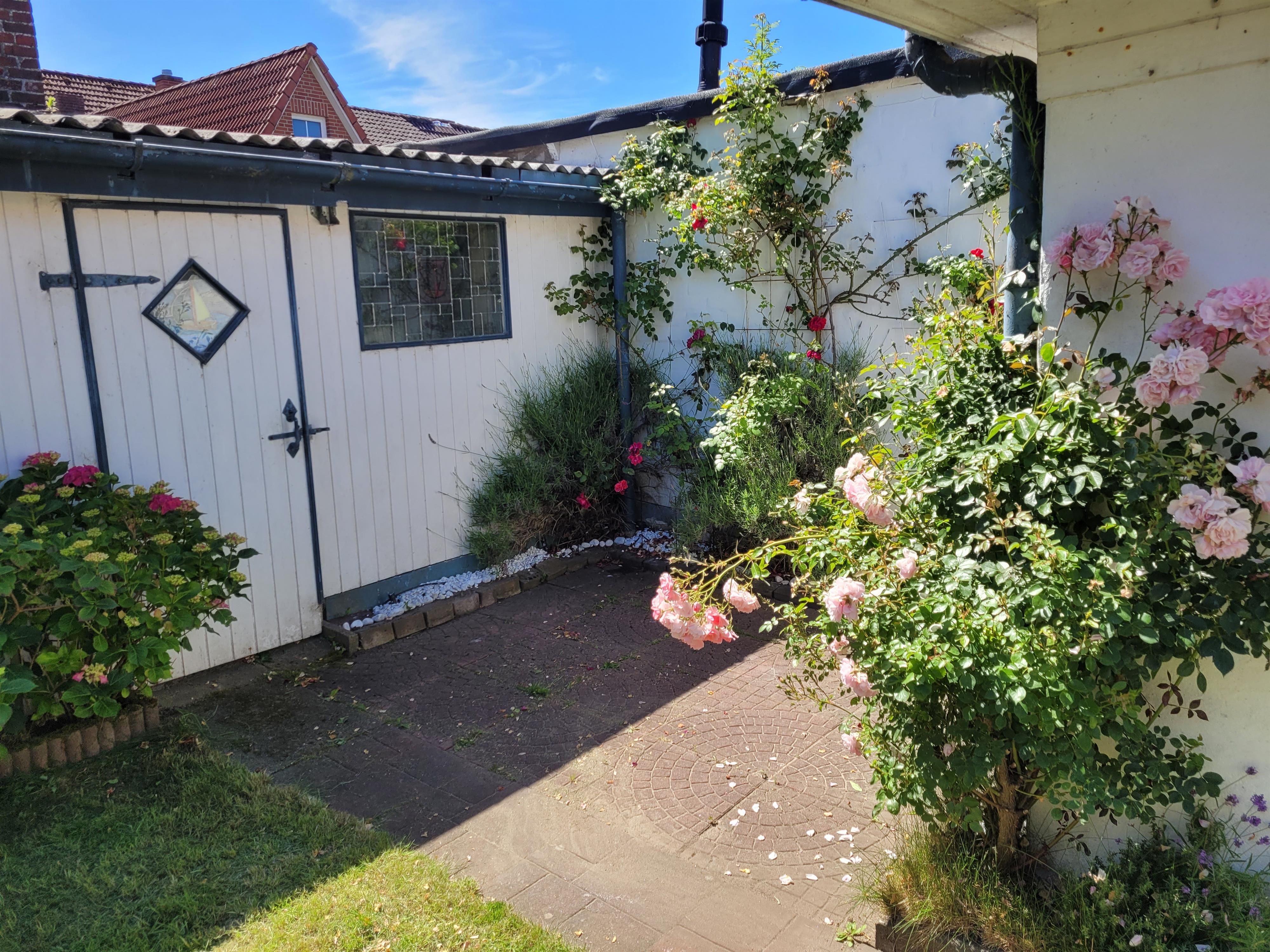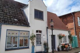 Stadthaus für 3 Personen, im Sommer auch 4 Personen, nach Süden ausgerichteter Innenhof mit kleiner Rasenfläche und Terrasse mit Glasdach. Zum Haus gehört eine Waschmaschine, die Küche ist mit einem Geschirrspühler ausgestattet. Der Kühlschrank hat ein ca. 40 Liter fassendes separates Gefrierfach. Im Obergeschoss befinden sich zwei Schlafzimmer: ein Zimmer mit Doppelbett, ein Zimmer im Einzelbett. Ein weiteres Zimmer mit Waschbecken und einem Bett (1,90m) ist von der Terrasse aus zugänglich (nur Sommerbezug). Um in dieses Zimmer zu gelangen muss eine Stufe überwunden werden. Dieses Haus ist nicht barrierefrei! Die Schlafräume sind im ersten Stock, das Bad im Erdgeschoss.