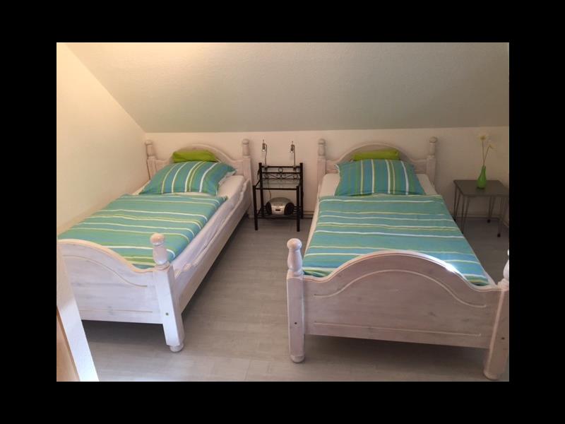 Die Wohnung verfügt über ein Schlafzimmer mit zwei Einzelbetten sowie ein Schlafzimmer mit einem Doppelbett.