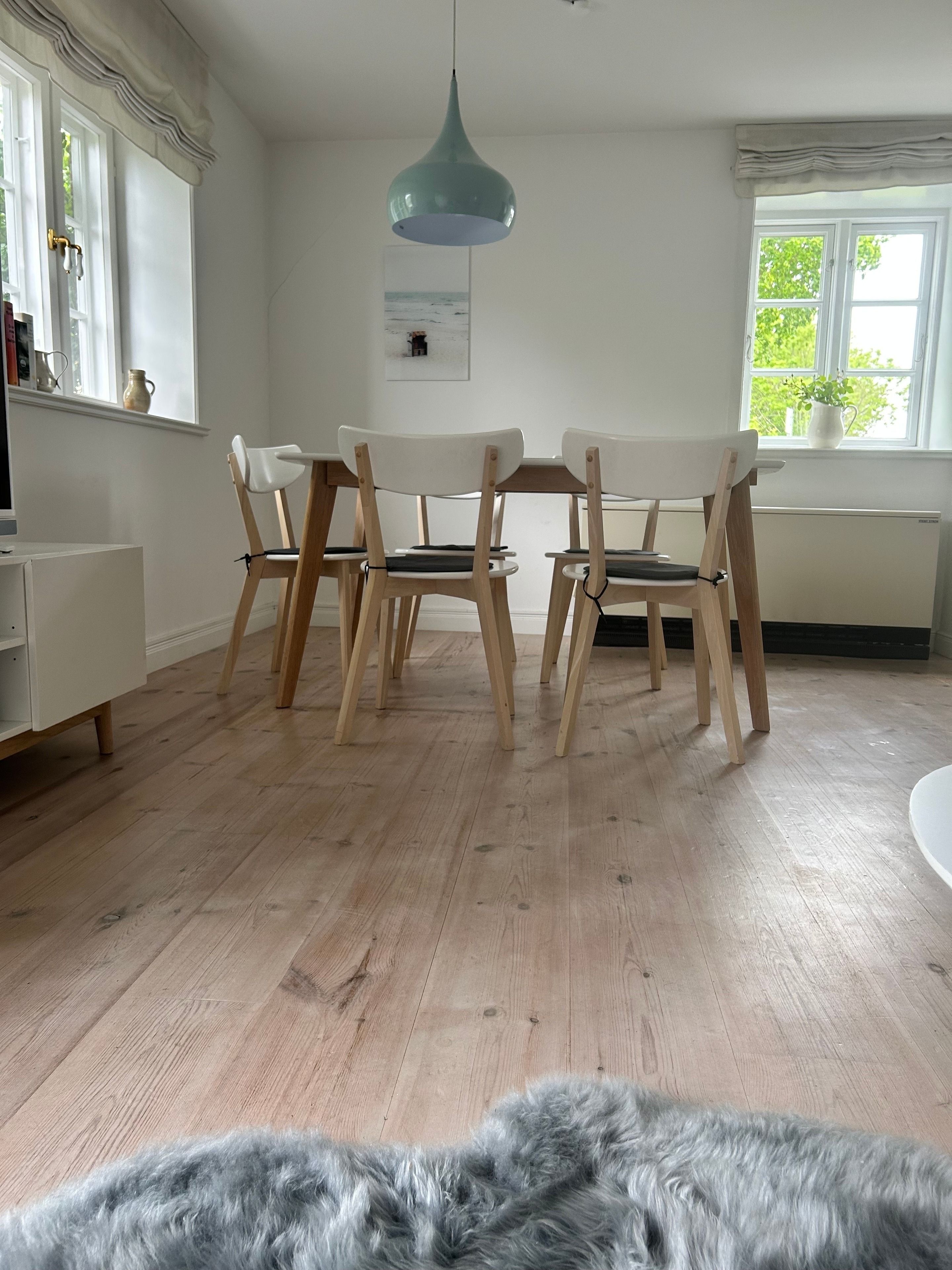 Der großzügige Essplatz eignet sich für gesellige Mahlzeiten, aber auch für lange Spieleabende. Die gemütliche Sitzecke neben dem Kaminofen lädt ein, die Abende auch bei schlechterem Wetter entspannt zu genießen. WLAN, Sat-TV und eine Musikanlage tragen zur Unterhaltung bei. Die windgeschützte Südost-Terrasse ist mit schönen Gartenmöbeln ausgestattet. Es gibt zwei moderne Duschbäder mit WC, je eins im Erd- und Obergeschoss. Die drei Schlafzimmer sind mit viel Liebe zum Detail eingerichtet, zwei Zimmer mit Doppelbett, das dritte beherbergt ein Einzelbett mit der Möglichkeit, eine weitere Schlafgelegenheit auszuziehen. Somit ergeben sich 6 reelle Schlafplätze und Platz für ein Babybett. Zur weiteren Ausstattung gehören Fön, Wäscheständer, Reinigungsgeräte inklusive eine Auswahl an Grundreinigungsmitteln, sowie Hochstuhl und Kinderbett bei Bedarf. Ein zur Wohnung gehörender Parkplatz befindt sich neben dem Haus.