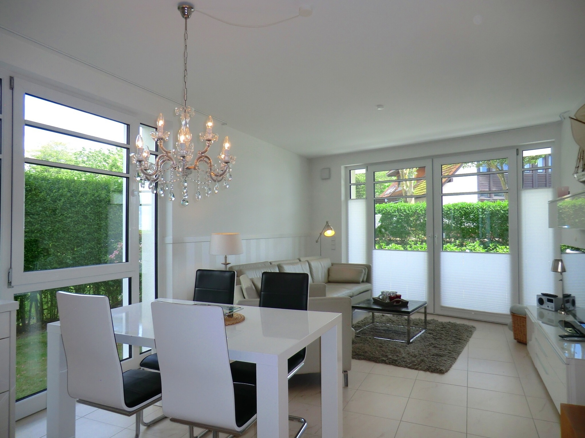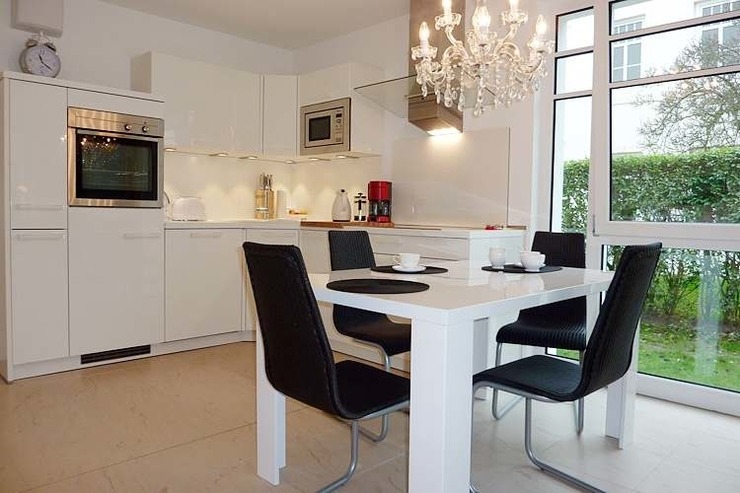 Die Wohnung besticht durch ein exklusives Ambiente. Breite Flügeltüren zum Schlafbereich schaffen eine Sphäre von Eleganz und Großzügigkeit. Viele ausgesuchte Details heißen Sie willkommen. Eine hochmoderne Küche, ein Bad mit Rain-Air-Dusche mit bodentiefem Einstieg, portugiesische Fliesen mit Fußbodenheizung in der gesamten Wohnung, ein Elektro-Kamin mit Umluft und die hauseigene Sauna lassen keine Wünsche offen. Haustiere sind bei uns herzlich willkommen (gegen Gebühr).
