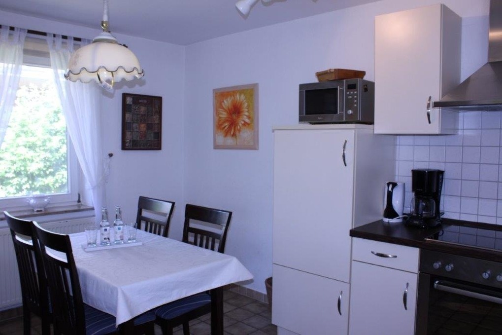 Durch seine ruhige Lage und nahe Entfernung zum Zentrum von Wyk bietet das Ferienhaus eine ideale Ausgangslage für den Aufenthalt auf der Nordseeinsel Föhr. Es liegt nicht weit entfernt von der Fußgängerzone und der Promenade, dem Strand und dem großen Meerwasserwellenbad. Im Nichtraucher-Haus stehen Ihnen 2 Schlafräume mit einem Doppel- und zwei Einzelbetten zur Verfügung. Ein Kinderbett und ein Kinderhochstuhl stellen wir auf Anfrage kostenfrei zur Verfügung. Das helle und freundliche Wohn- und Esszimmer lädt zu gemeinsamen Stunden ein und ist mit Sat-TV ausgestattet. Zudem bietet die vollausgestattete Küche, sowie das Badezimmer alle Annehmlichkeiten für einen erholsamen Familienurlaub. Im Außenbereich kann der Garten mit Gartenmöbeln genutzt werden. Auf der hauseigenen überdachten Terrasse lässt es sich herrlich in der Abendsonne entspannen oder begrüßen Sie doch den Tag mit einem Frühstück im Grünen... Parkplätze sind am Haus vorhanden.