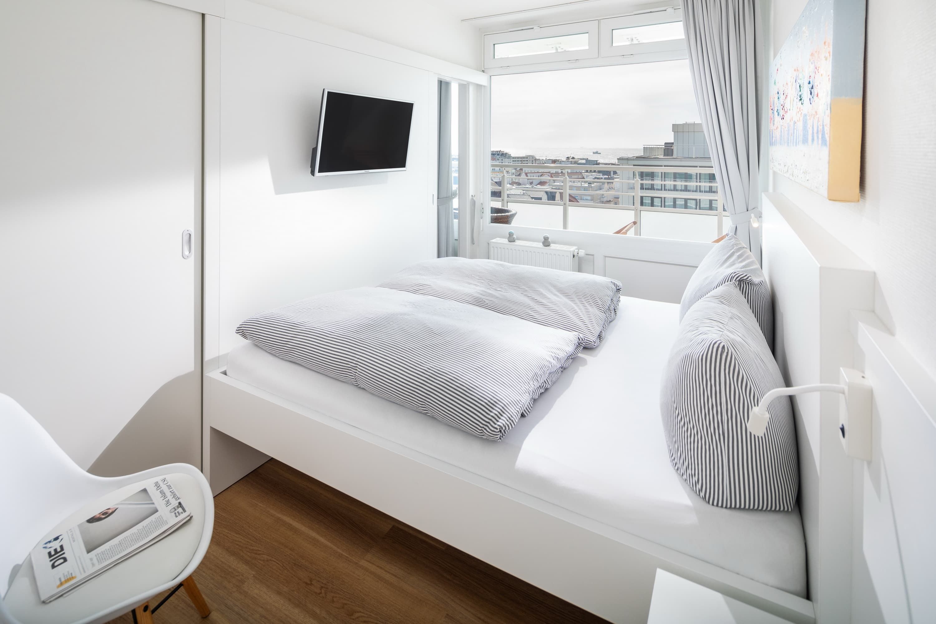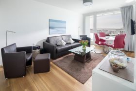 Die lichtdurchflutete Wohnung (43qm) bietet Platz für 2-4 Personen und befindet sich im Haus „Nordseeblick“ in der Kaiserstraße direkt am Meer. Durch ihre Lage im 8. Stock, bietet sie vom Balkon aus einen traumhaften Blick auf die Nordsee in Richtung Juist, über Norderney und auf das Wattenmeer. Sie bietet einen Wohn-Essbereich mit einer Schlafcouch, die als komfortables Doppelbett genutzt werden kann. Desweiteren gibt es ein helles Schlafzimmer mit Doppelbett. Internet per WLAN steht Ihnen für Ihren Aufenthalt kostenlos zur Verfügung. Hunde sind willkommen.