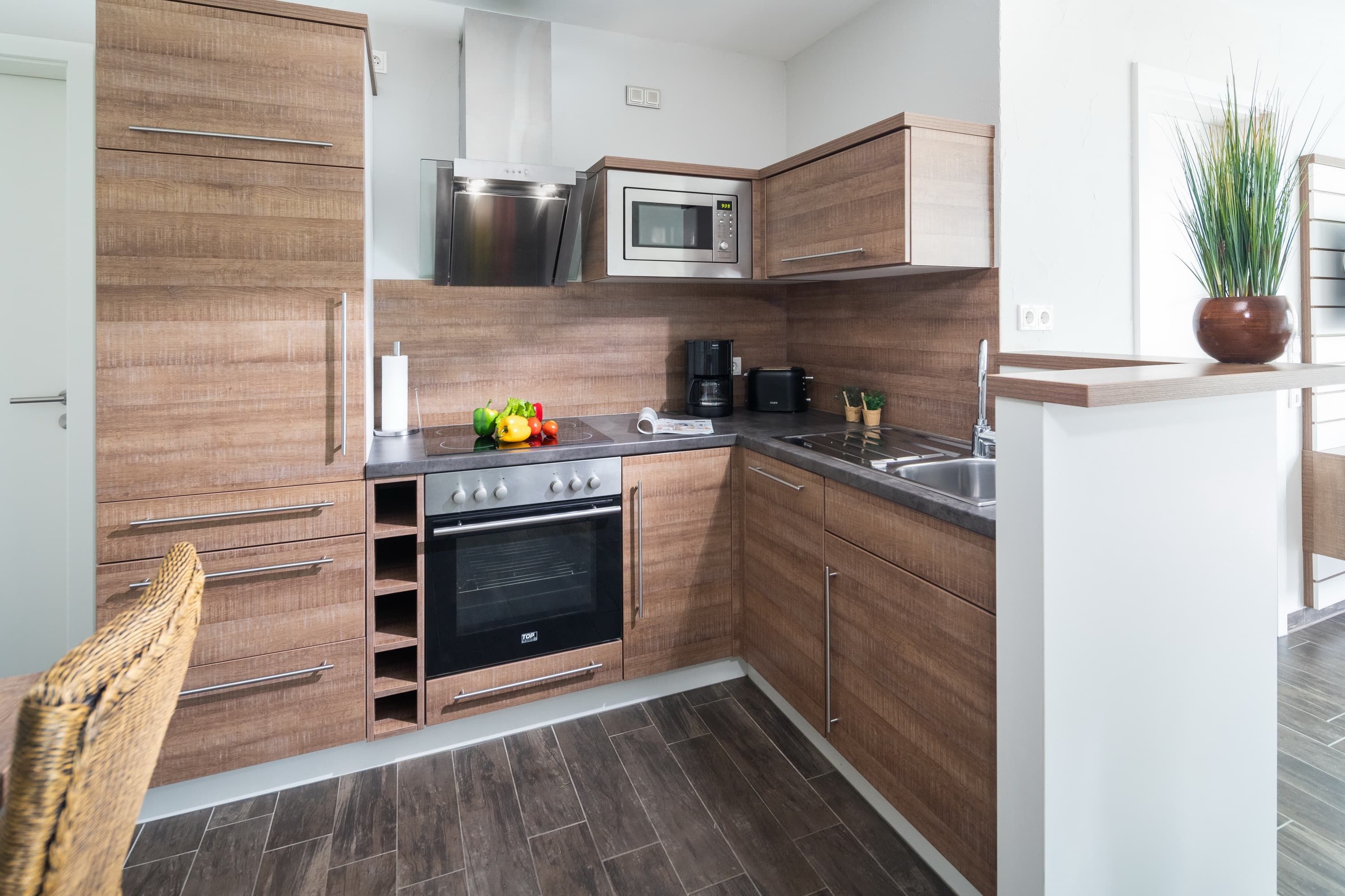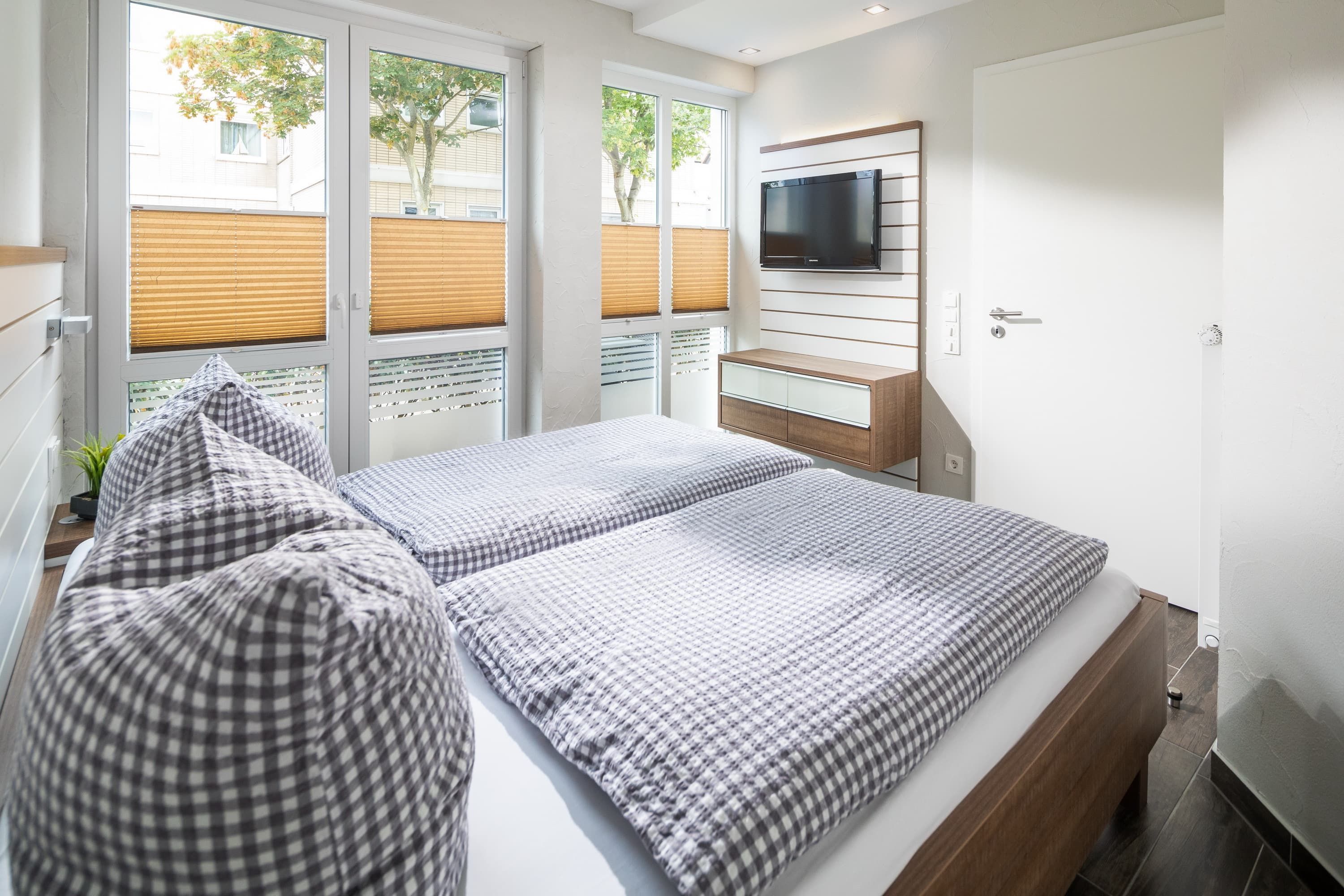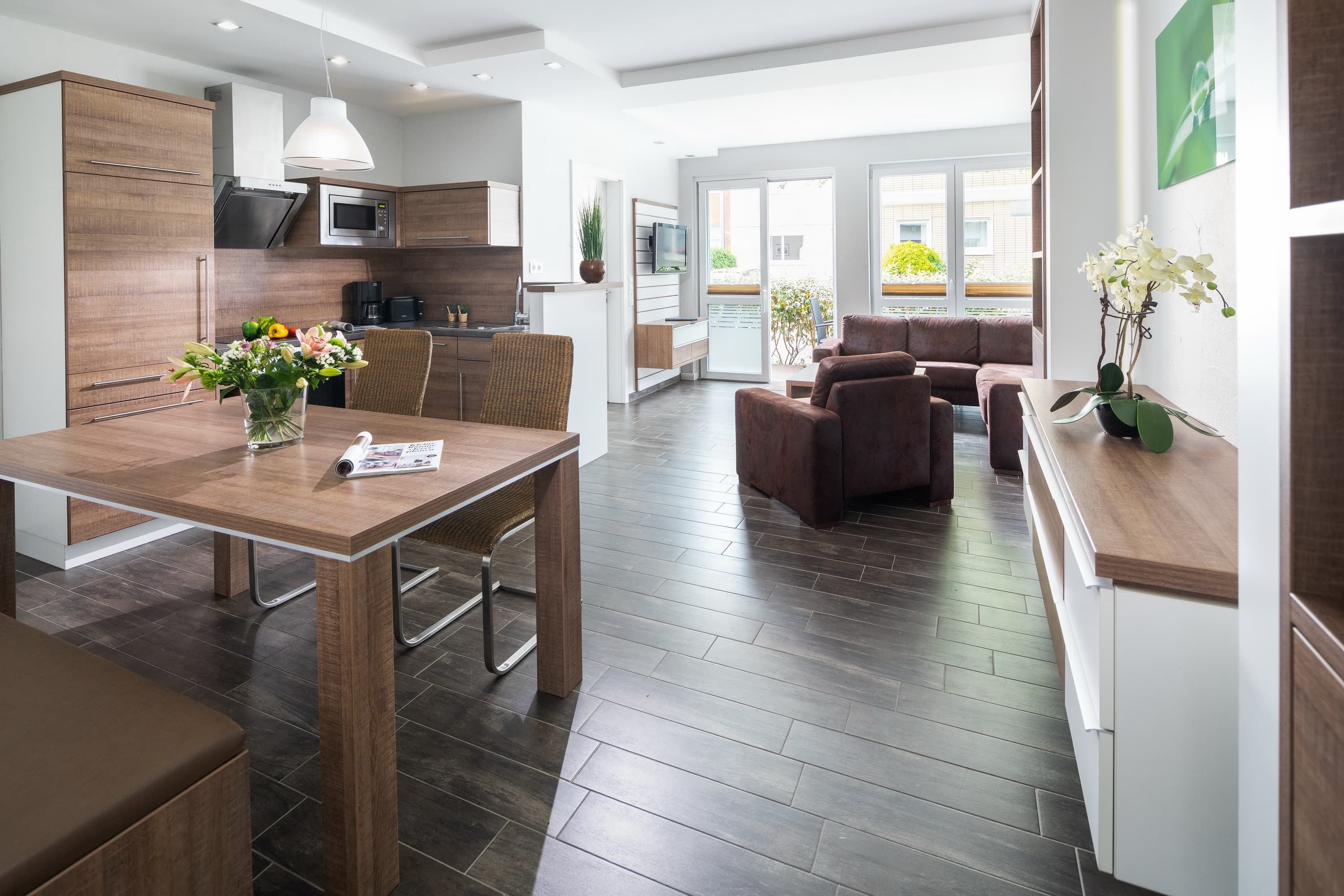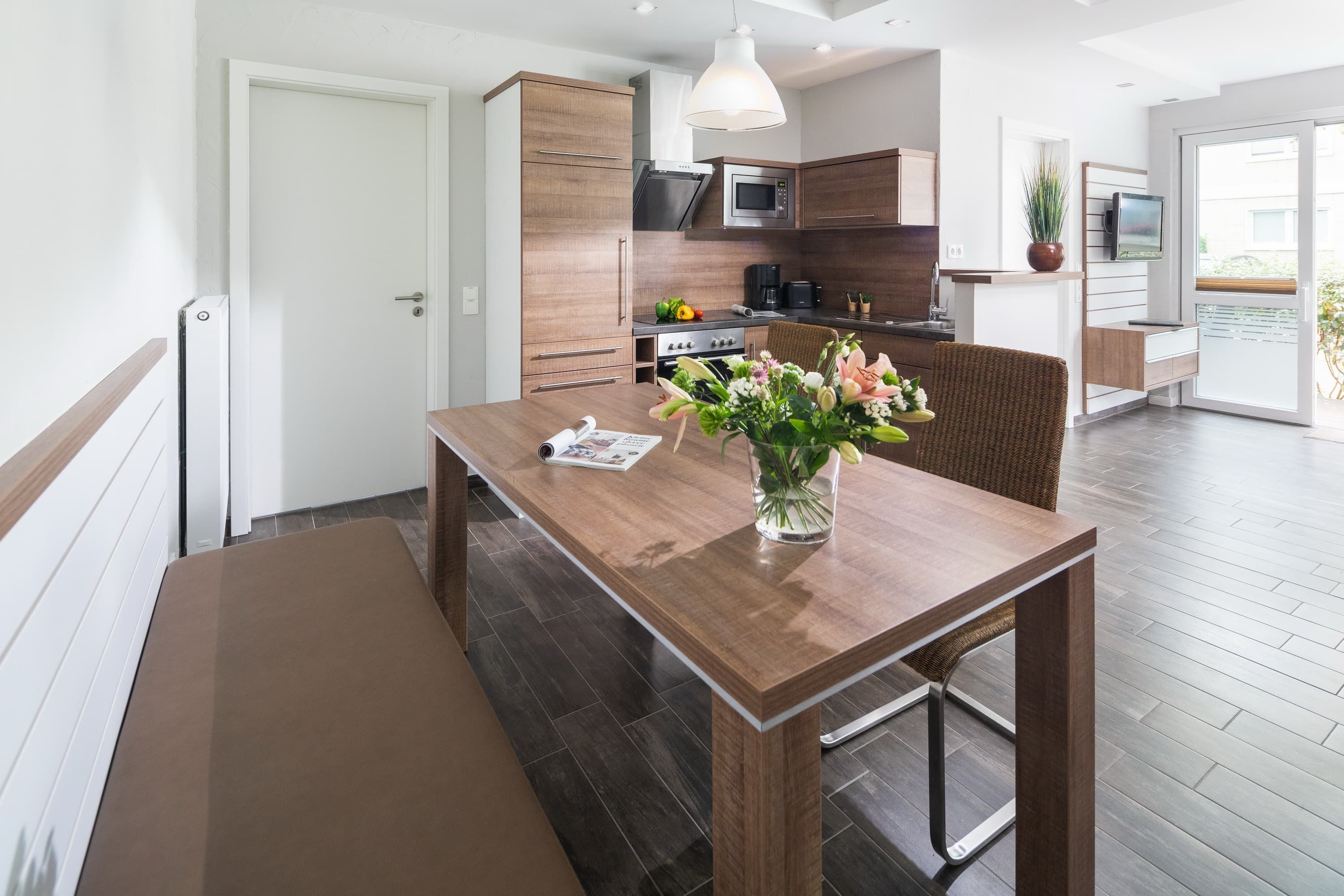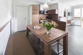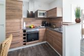 Die „Villa Rossini“ Whg. 3 befindet sich im Erdgeschoss und verfügt über einen großzügigen, modern eingerichteten Wohn-Essbereich mit 2 Flachbildschirmen, eine hochwertig eingerichtete Einbauküche (Spülmaschine, Backofen, etc.), 1 Schlafzimmer mit Doppelbett (1,80m x 2,00m) und 1 Schlafzimmer mit 2 Einzelbetten, Bad und eine Terrasse.