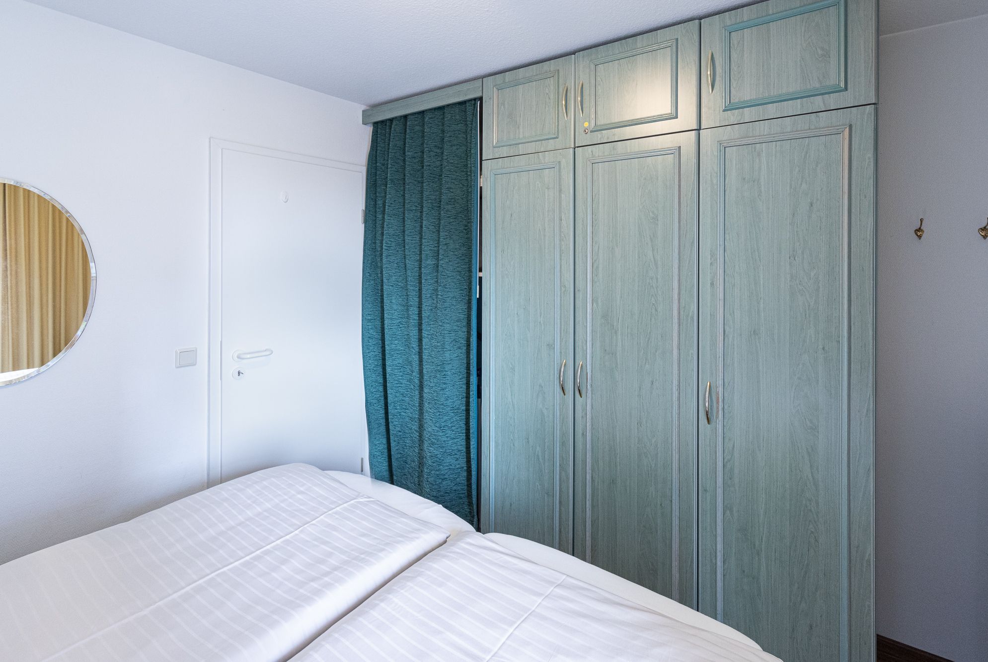 Das Schlafzimmer ist mit einem Doppelbett ausgestattet und verspricht erholsame Nächte. Handtücher, Kinderbett und Hochstuhl können auf Wunsch gegen eine geringe Gebühr bereitgestellt werden. Ein Tiefgaragenstellplatz ist exklusiv für Sie reserviert. Der barrierefreie Zugang zum Haus und zum Aufzug sorgt für bequemen Komfort. Sowohl die Wohnung als auch der Keller (mit Münz-Waschmaschine, Münz-Trockner und Fahrrad-Abstellplatz) sind über den Aufzug mühelos erreichbar.