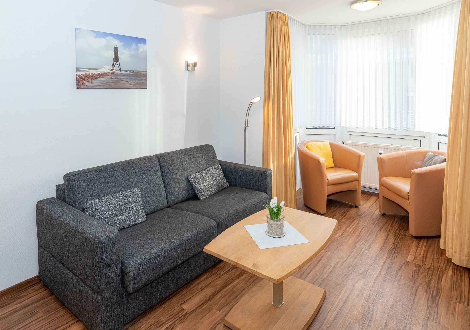Die Wohnung in der ersten Reihe hinter dem Deich erfreut sich besonders in der ruhigen Vor- und Nachsaison großer Beliebtheit bei unseren Stammkunden.