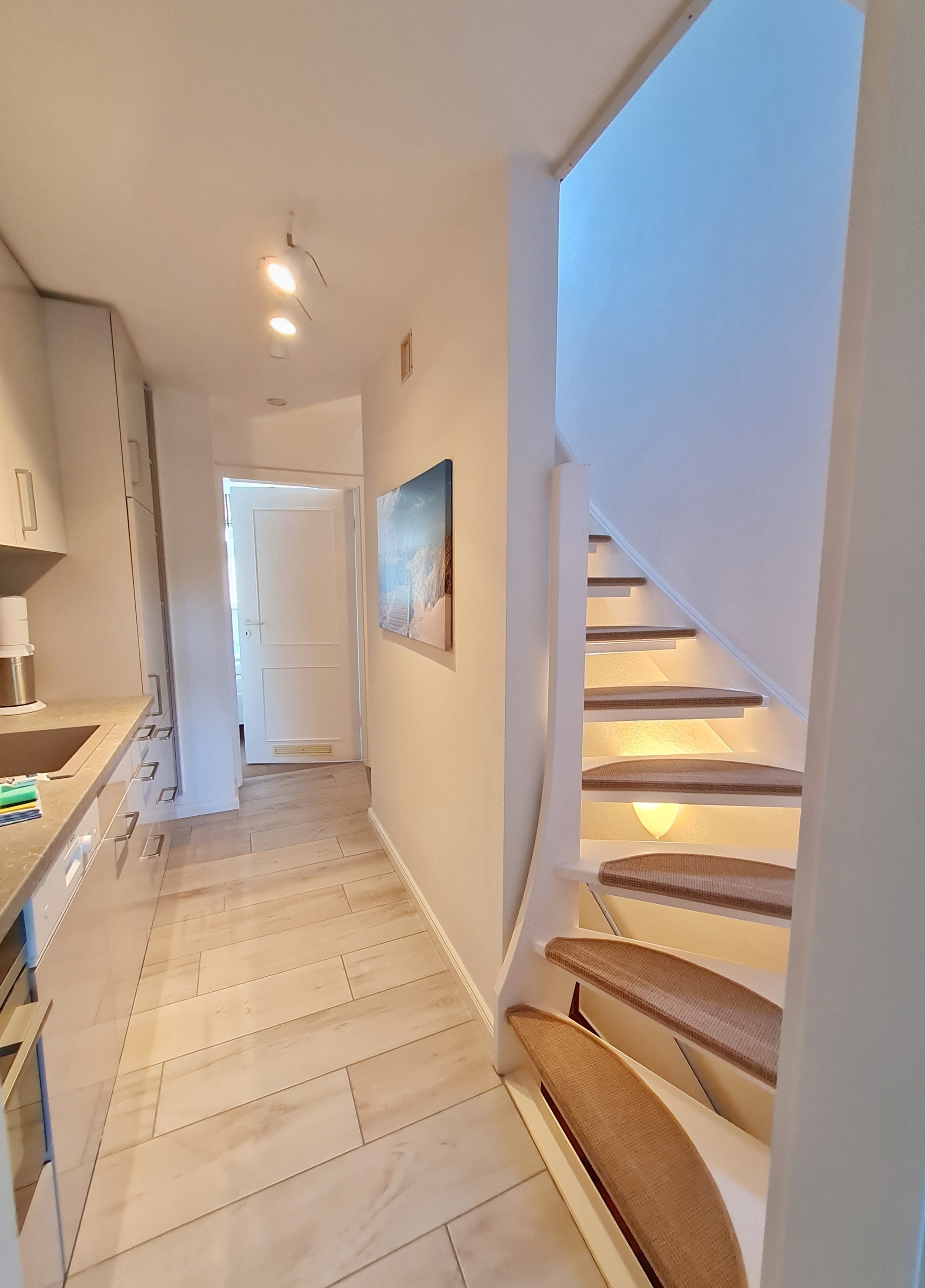 Wohnen Sie direkt am Südstrand, mit Blick auf den Kurpark, der durch den alten Baumbestand eine Oase der Ruhe ist. In nur wenigen Schritten sind Sie am Wasser und können Meer und Strand genießen. Das Haus Eiche wird den ganzen Tag mit Sonne verwöhnt. Die komplett sanierte und liebevoll eingerichtete Wohnung erstreckt sich über 3 Etagen (EG, OG und DG) und lädt zum Wohlfühlen und Verweilen ein. Sie finden eine moderne Einbauküche mit anschließendem Esszimmer und ein Doppelbett-Schlafzimmer mit Blick in den Park. Das Badezimmer liefert auf kleinem Raum allen Komfort, den man von einem Hotelbadezimmer erwartet. Im Dachgeschoss befindet sich zusätzlich noch ein beheizbarer Abstellraum. Highlights wie eine Nespressomaschine, Flatscreen, iPod Radio/CD Player, WLAN-Intern machen aus der Wohnung die perfekte Alternative zu einem Hotel am Strand. Im Garten gibt es zur gemeinsamen Nutzung mit Whg. Schwalbennest einen befestigten Sitzplatz/Terrasse mit einem kleinen Tisch, zwei Stühlen und einem Strandkorb während der Saison.