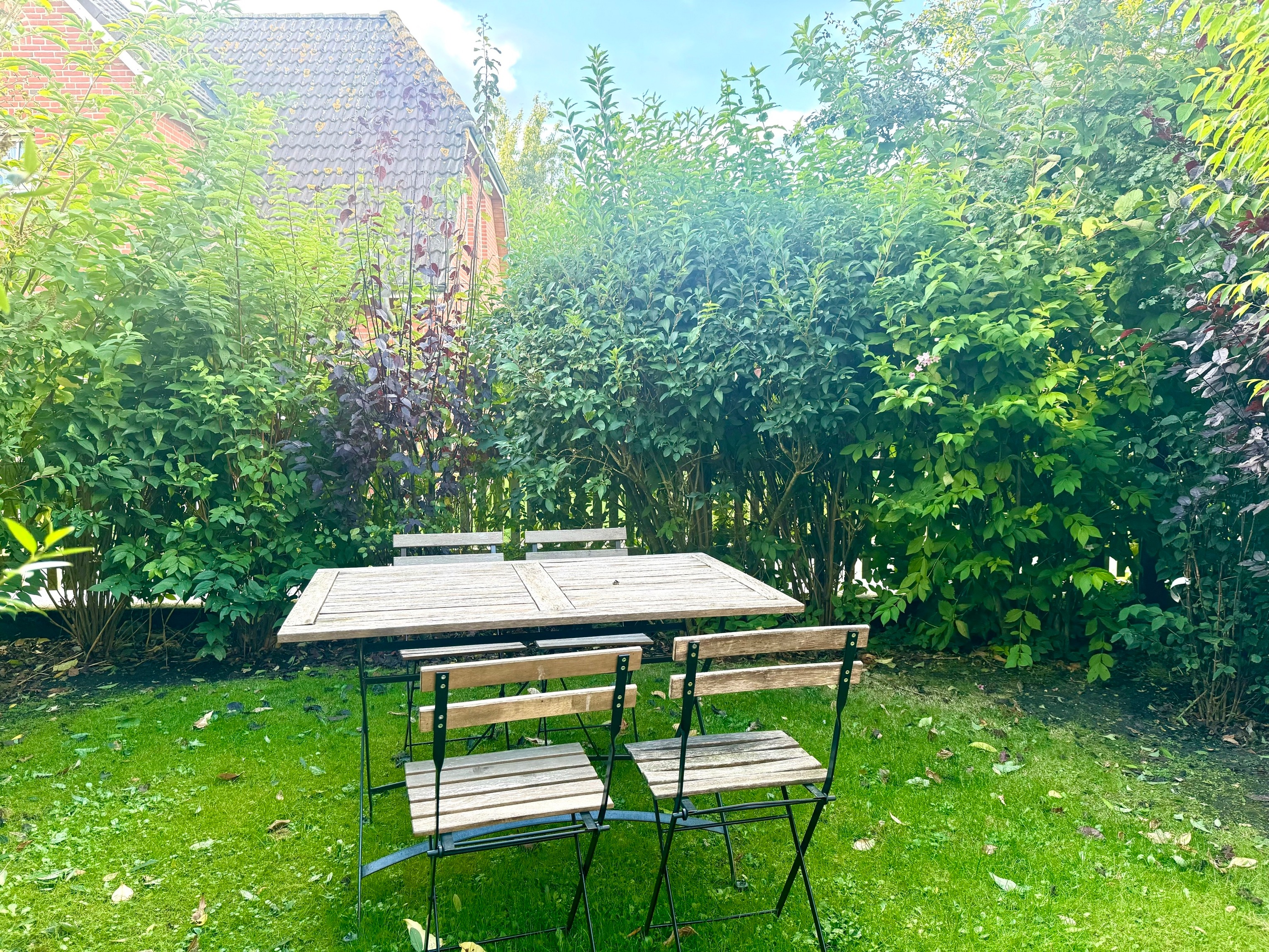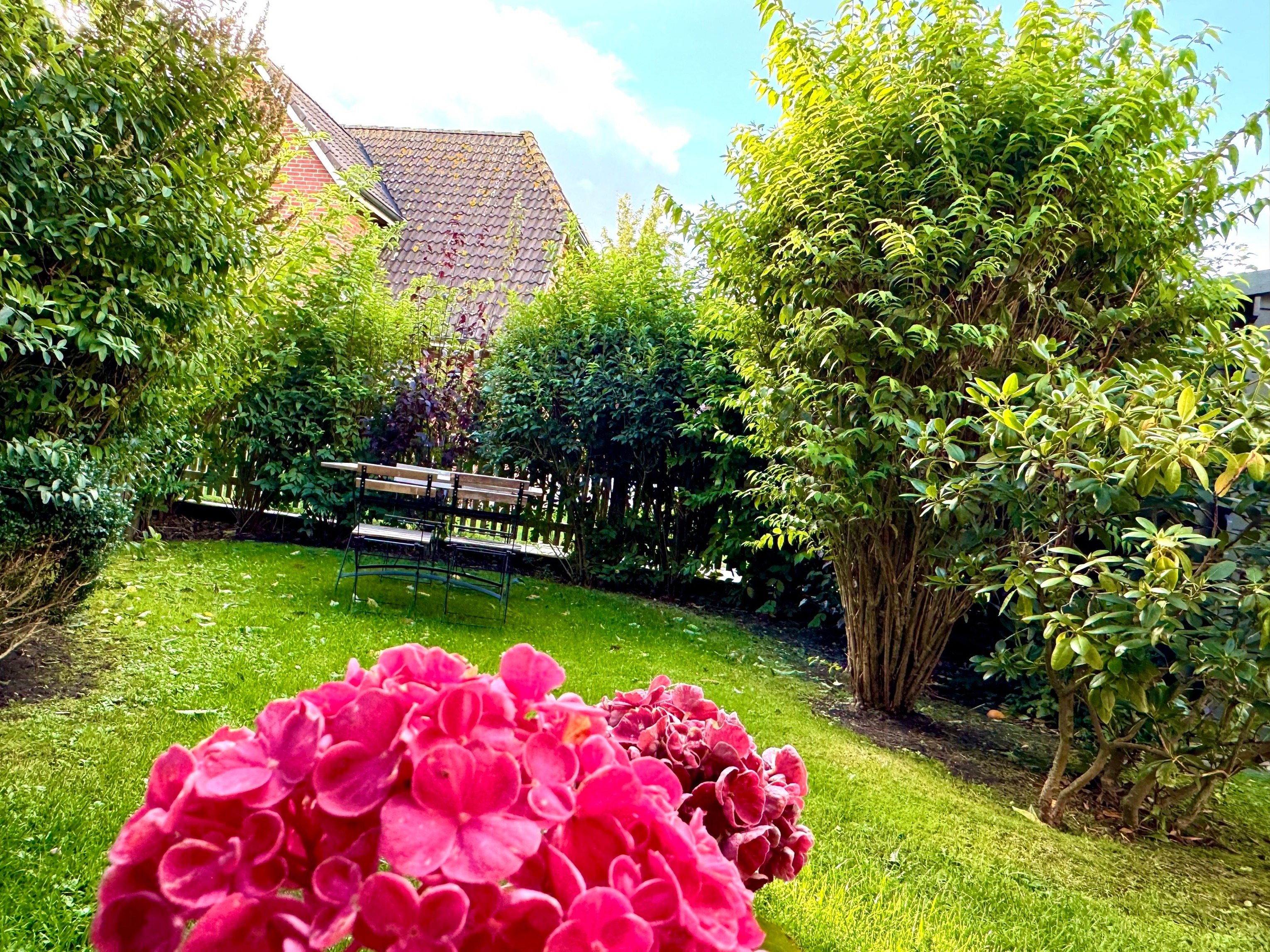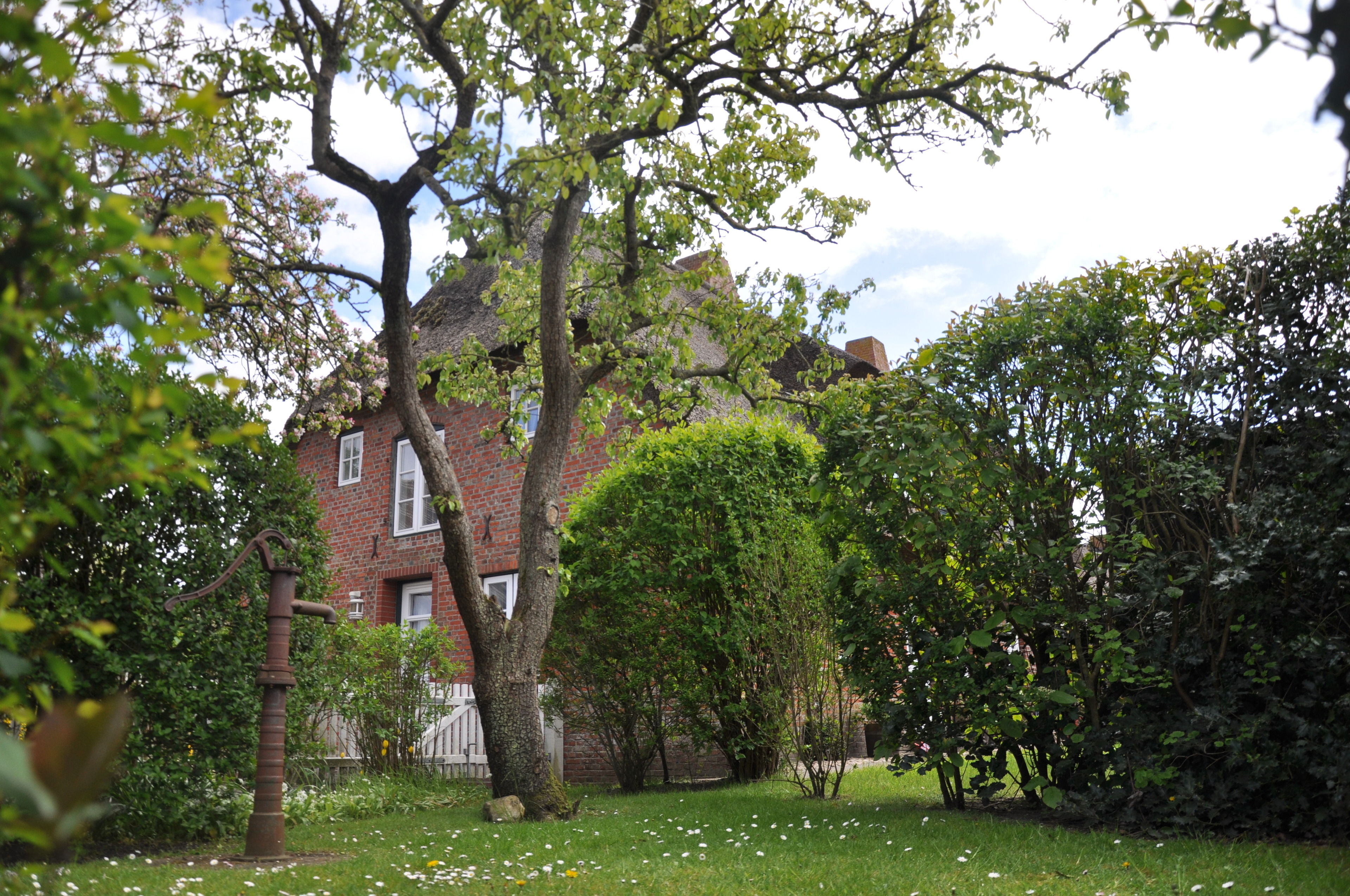 Unser Haus mit seinem schön eingewachsenen Garten liegt zwischen zwei kleinen Stichstraßen. Nebenan ist ein Bauernhof, dahinter liegt direkt die Marsch, welche sich über ca. 1-2 km bis zum Deich hinzieht.