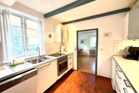 Unsere Wohnung Blaue Stube, ist die historische Kernwohnung des Hauses, ideal für bis zu 4 Personen. Sie befindet sich im Erdgeschoss links und ist nach Süden gerichtet. Besonders geschätzt wird der urige Charme dieser Wohnung, die, wie unsere Gartenwohnung, über direkten Zugang zur West-Terrasse und großem Garten verfügt. Sie ist ca. 49 qm groß und verfügt über:* ein Schlafzimmer mit zwei Einzelbetten (je 100 breit) und ein Wohnzimmer mit ausklappbarer Schlafcouch. In der Wohnung befindet sich eine helle Küche mit Geschirrspülmaschine, Kühlschrank, Kaffee - und Espressomaschine und Elektroherd/Backofen. Diese Wohnung ist mit Telefon (kostenlos ins deutsche Festnetz) und kostenfreien DSL-Anschluss ausgestattet. Das Badezimmer mit Dusche/Badewanne hat ein kleines Fenster und ist weiß gefliest. Natürlich gehört der wunderschöne Garten mit Terasse zum Objekt dazu und läd zum verweilen ein.