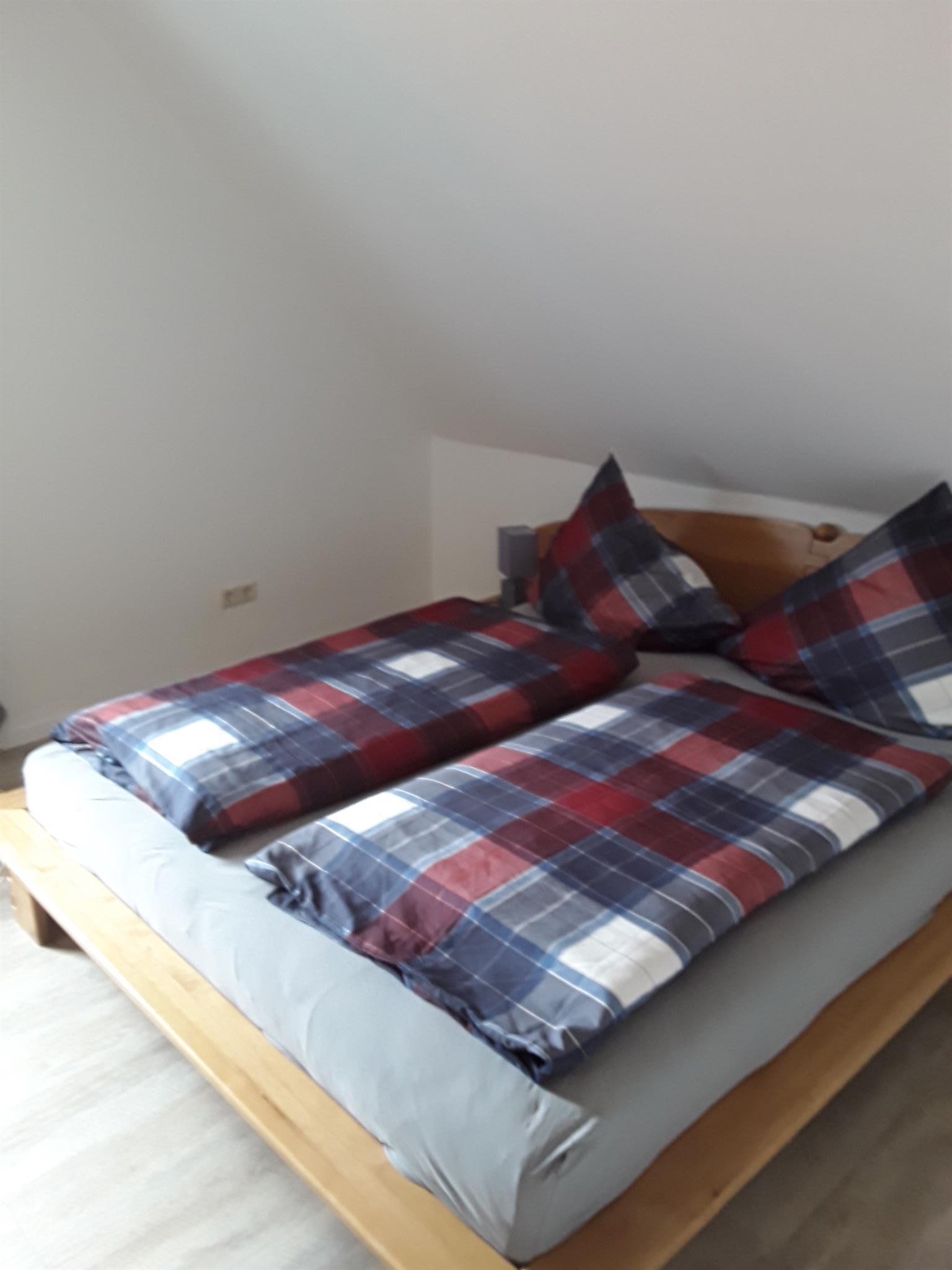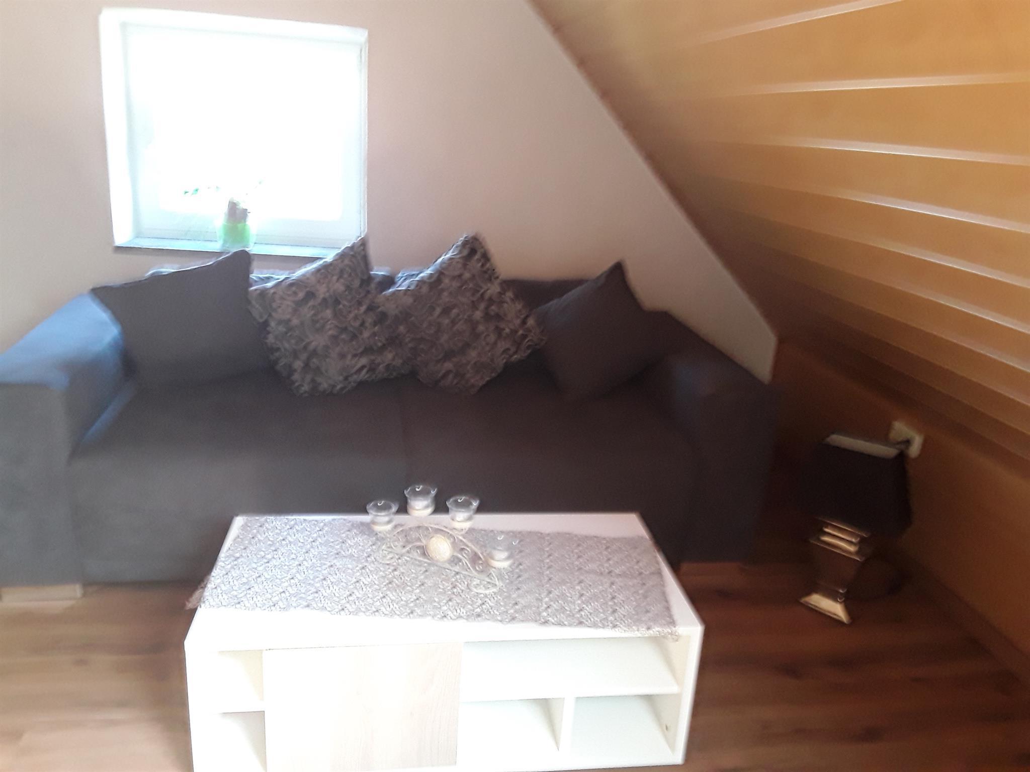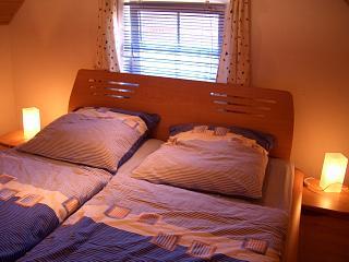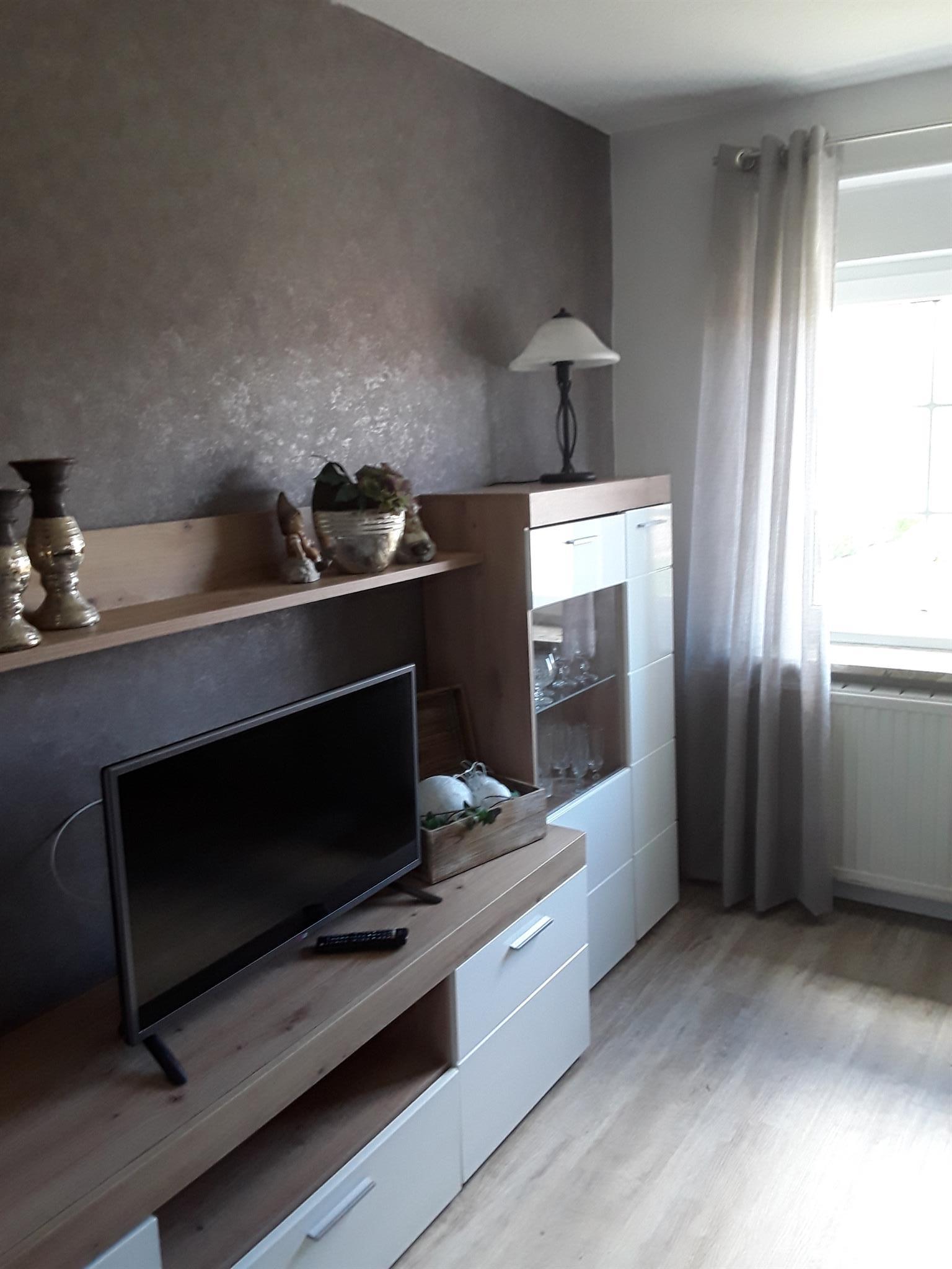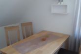 Diese Ferienwohnung bietet auf ca. 50 qm Wohnfläche auf zwei Etagen (Erd- und 1. Obergeschoss) ein gemütliches Wohnzimmer , einen Schlafraum mit Doppelbett, eine sehr gut ausgestattete separate Einbauküche (4 Platten-Herd mit Backofen, Dunstabzugshaube, Kühlschrank, Kaffeemaschine, Wasserkocher, Eierkocher, Toaster, Geschirr, Kochtöpfe) und Esstisch, und ein Bad mit Dusche, Waschbecken, WC, Fön.