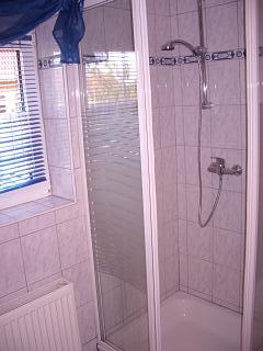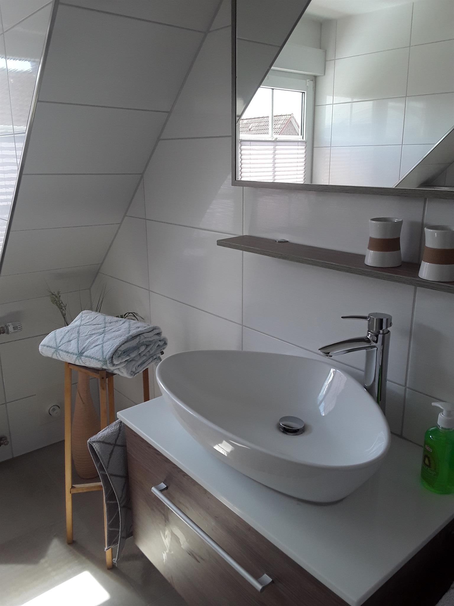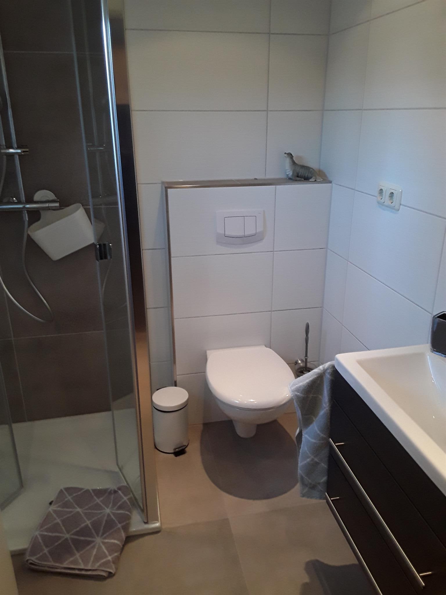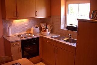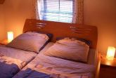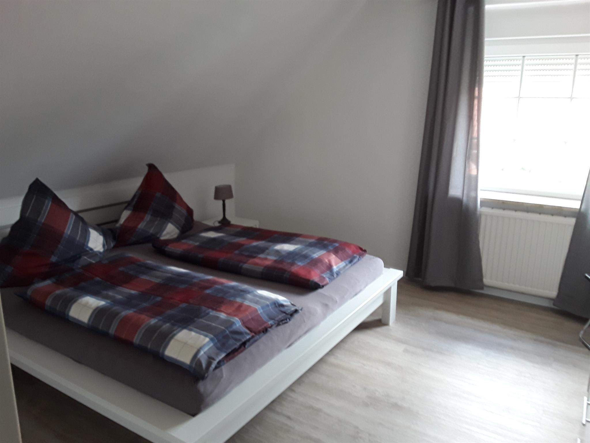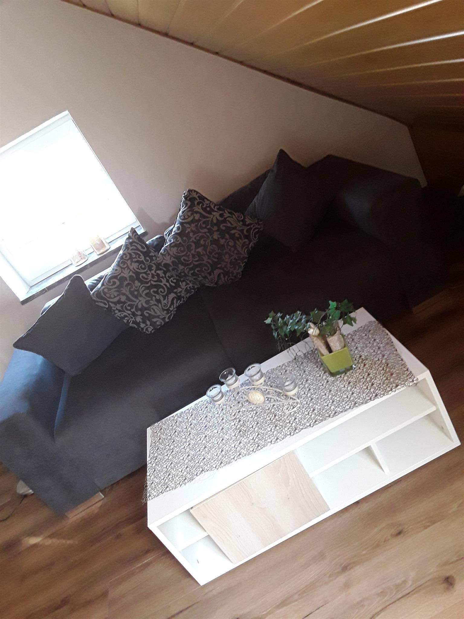 Diese Ferienwohnung bietet auf ca. 50 qm Wohnfläche auf zwei Etagen (Erd- und 1. Obergeschoss) ein gemütliches Wohnzimmer , einen Schlafraum mit Doppelbett, eine sehr gut ausgestattete separate Einbauküche (4 Platten-Herd mit Backofen, Dunstabzugshaube, Kühlschrank, Kaffeemaschine, Wasserkocher, Eierkocher, Toaster, Geschirr, Kochtöpfe) und Esstisch, und ein Bad mit Dusche, Waschbecken, WC, Fön.