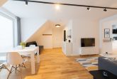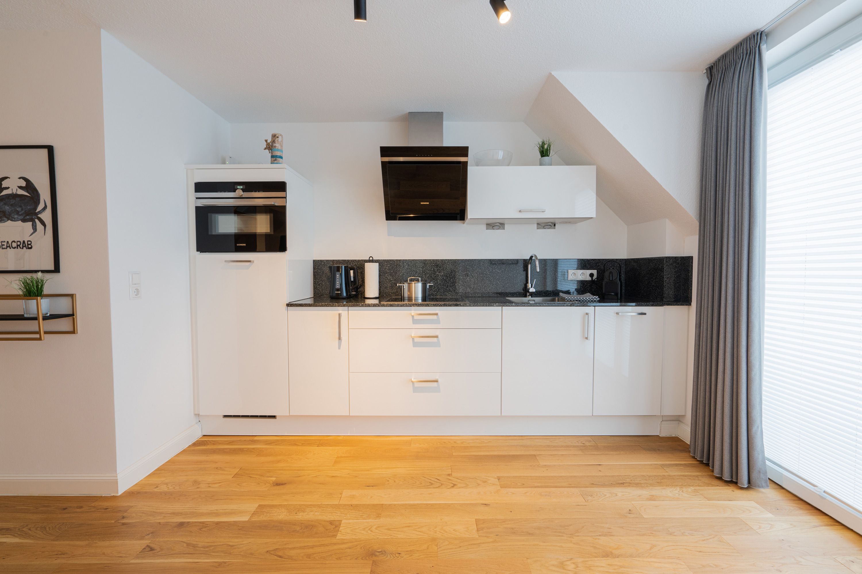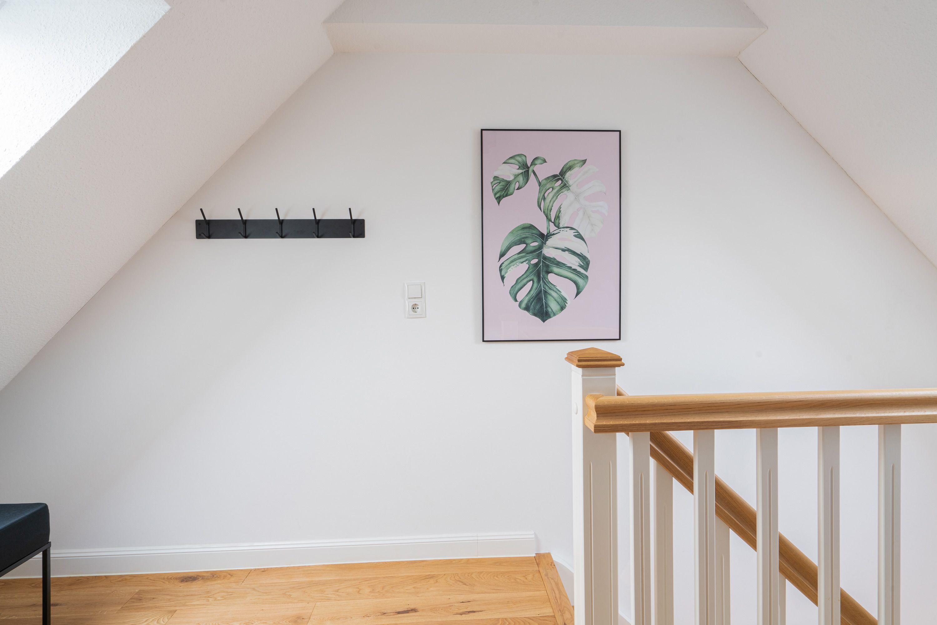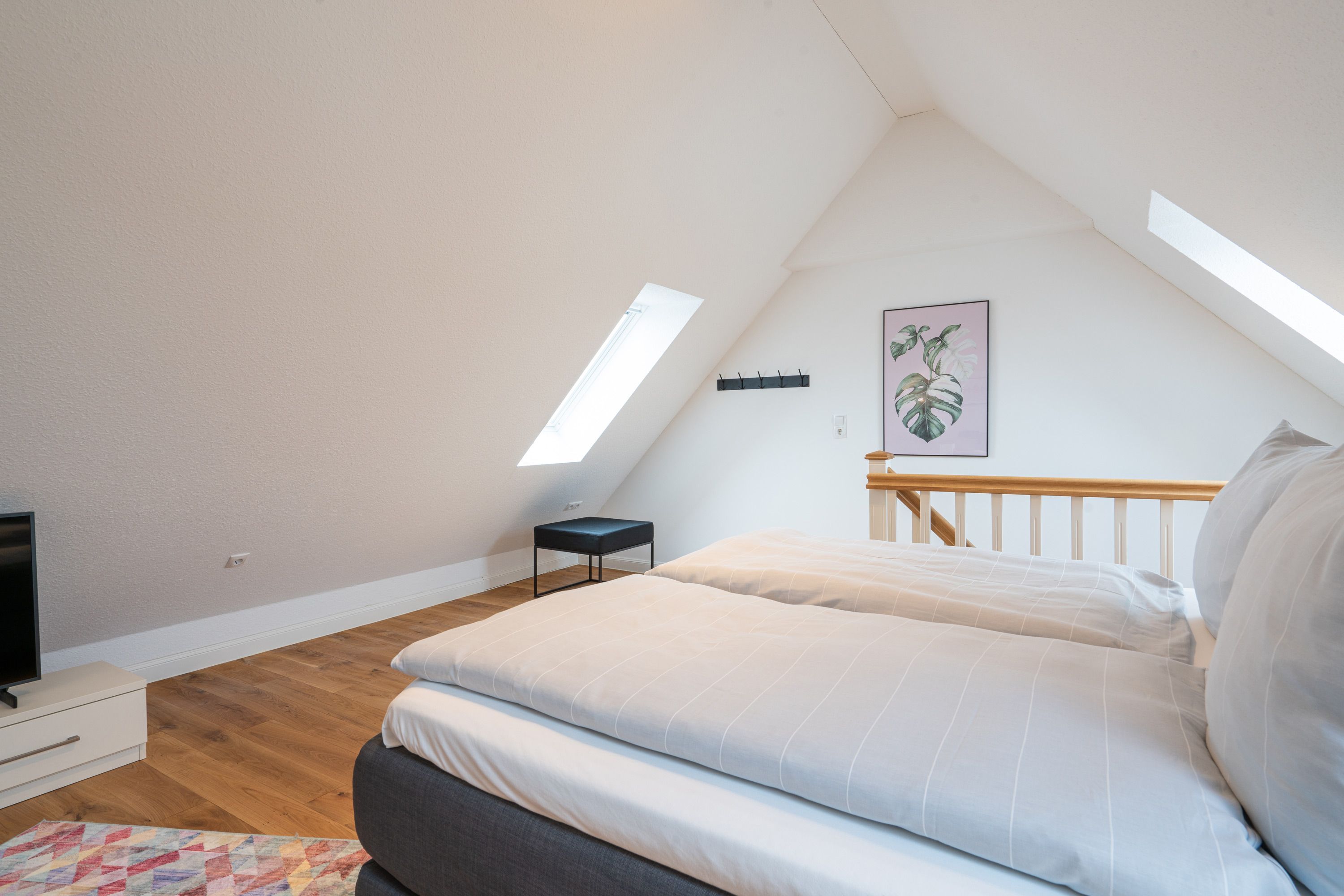 Unser Lighthouse 5 ist ein helles, freundliches Appartement mit Echtholzparkett, separatem Schlafzimmer im Dachgeschoss,