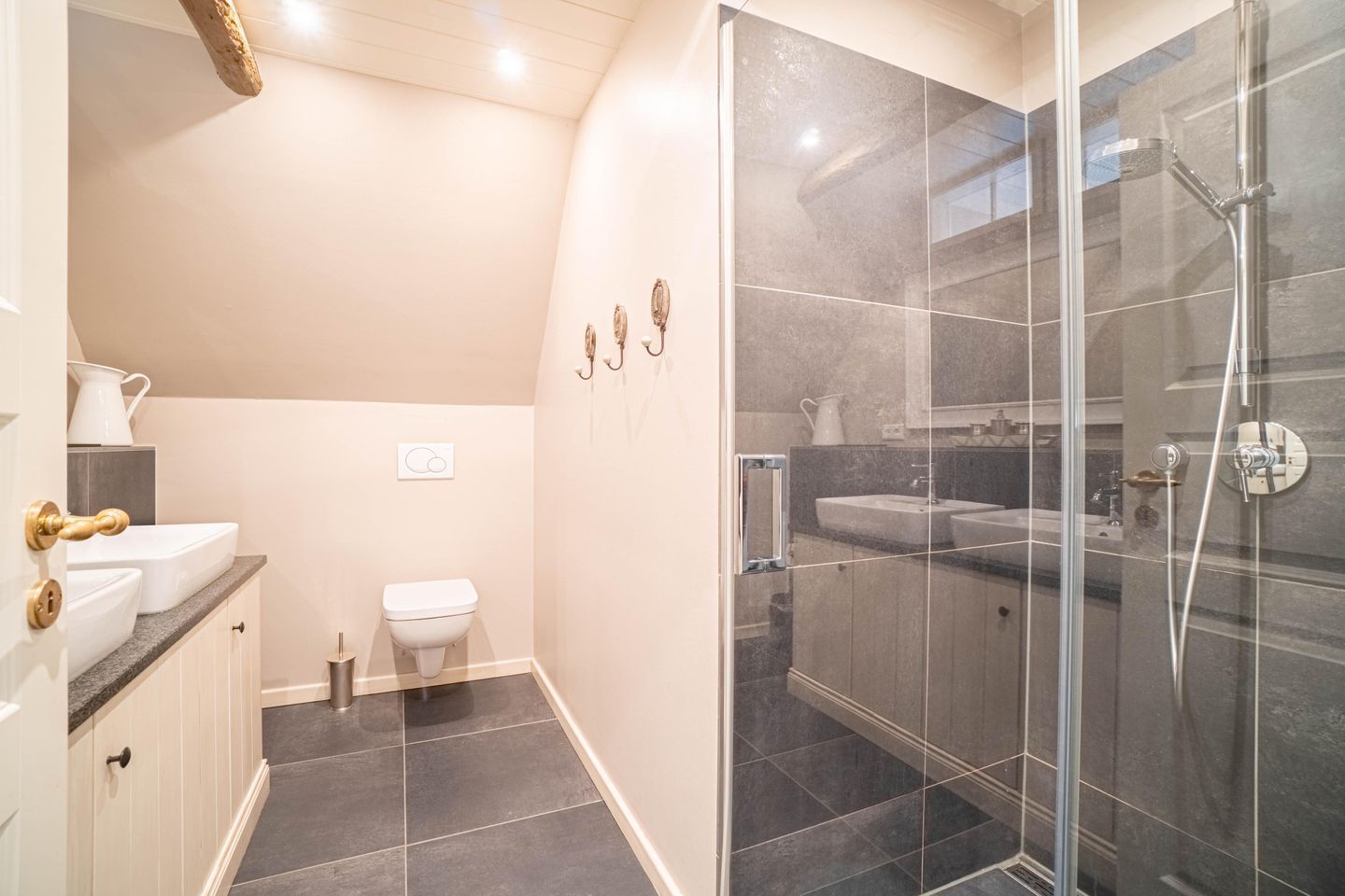 Im Erdgeschoss des Hauses befinden sich neben dem großzügigen Wohn- und Esszimmer mit offener Küche und Kamin auch ein separater Fernsehraum, ein Schlafzimmer mit Doppelbett und zwei Bäder - eines davon mit Sauna - sowie ein Hauswirtschaftsraum mit Waschmaschine und Trockner. Vom Wohnbereich aus haben Sie direkten Zugang auf die Terrasse. Sämtliche Bäder im Haus verfügen über eine Fußbodenheizung und eine bodengleiche Dusche. Die Ausstattung des Ferienhauses ist vielfältig und hochwertig.