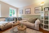 Im Obergeschoss sind die beiden Schlafzimmer - eines mit Doppelbett und eines mit zwei Einzelbetten - sowie zwei der drei Bäder - eines davon en Suite - gelegen.