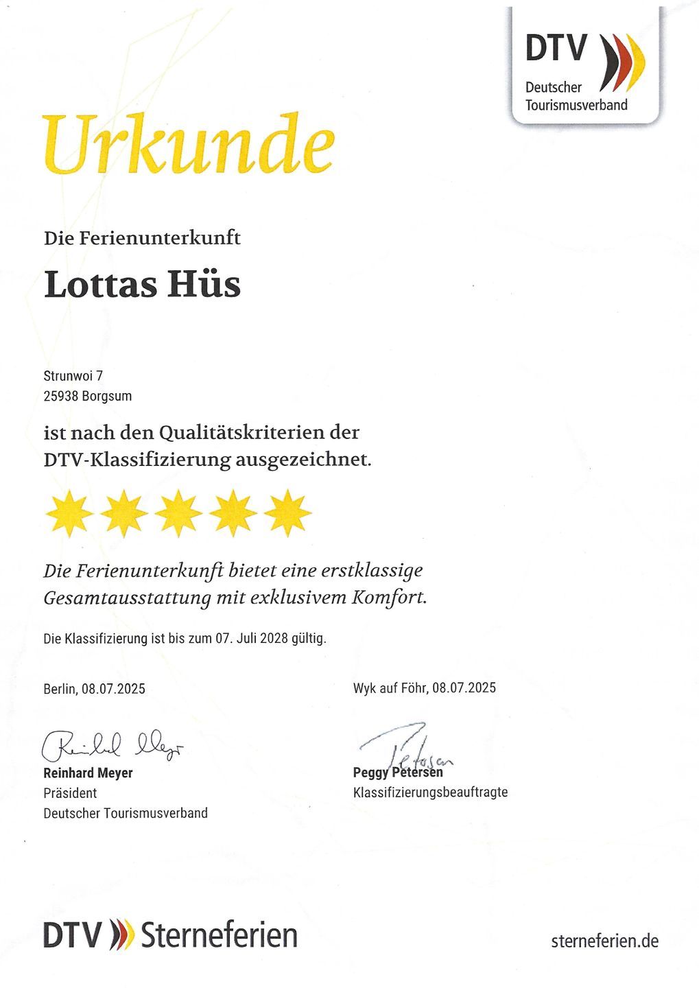 Lottas Hüs wurde 2022 fertig gestellt und vom Deutschen Tourismusverband (DTV) aufgrund der hochwertigen Ausstattung und Qualität mit 5 Sternen ausgezeichnet.