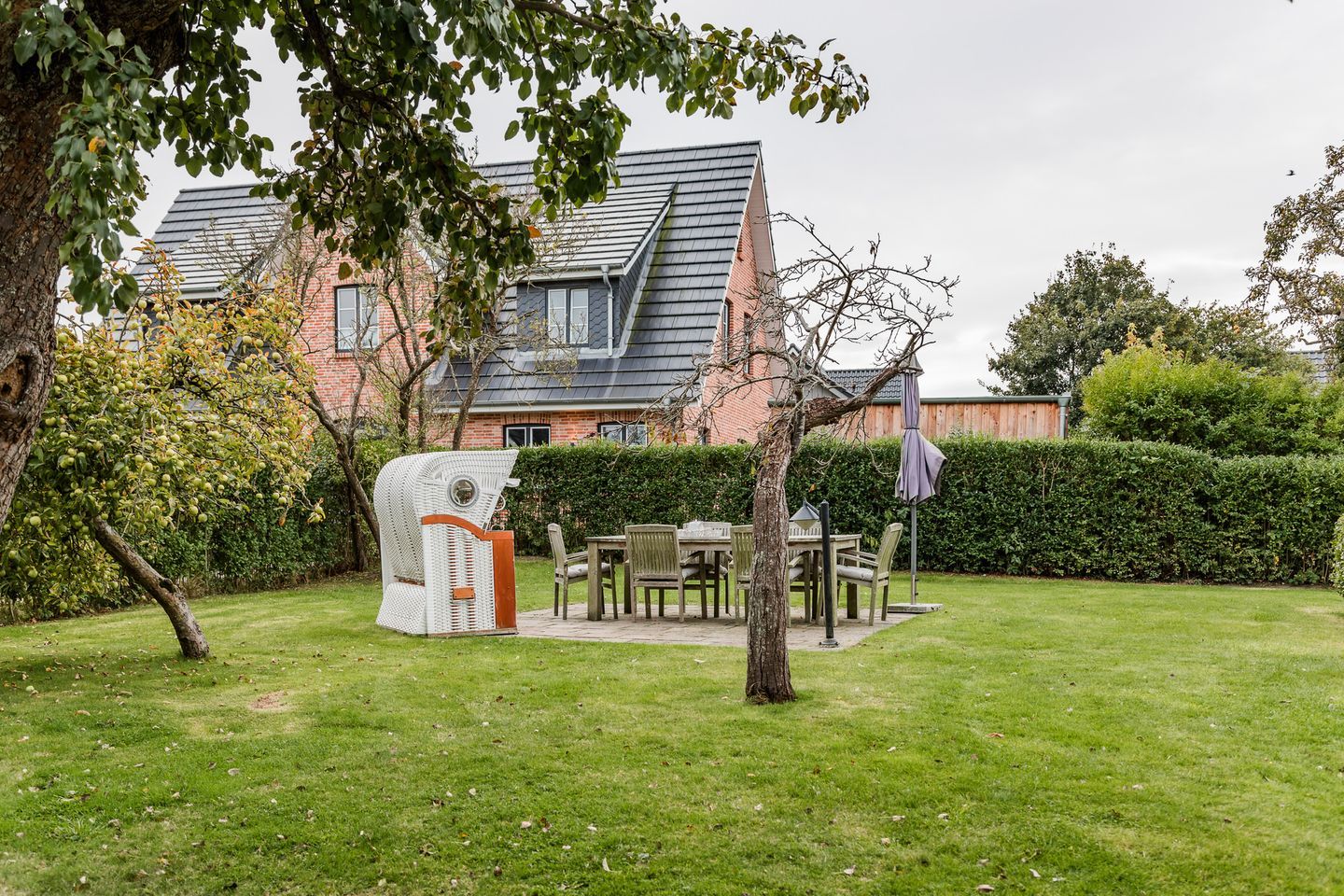 Das Schulmeisterhaus ist aufgeteilt in zwei Ferienwohnungen, die sich jeweils über das Erd- und Obergeschoss erstrecken. Links ist die Ferienwohnung Große Pause gelegen und rechts die Kleine Ferien. Ein wunderschöner Garten mit alten Obstbäumen, von denen Sie sich selbstverständlich bedienen können, rundet das Ambiente ab. Jeder Ferienwohnung ist ein eigener Terrassenplatz zugeordnet, welcher neben dem Gartenmobiliar auch über einen Sonnenschirm und einen eigenen Strandkorb verfügt. Auch ein eigener Wohnungs-PKW-Stellplatz ist direkt am Haus gegeben.