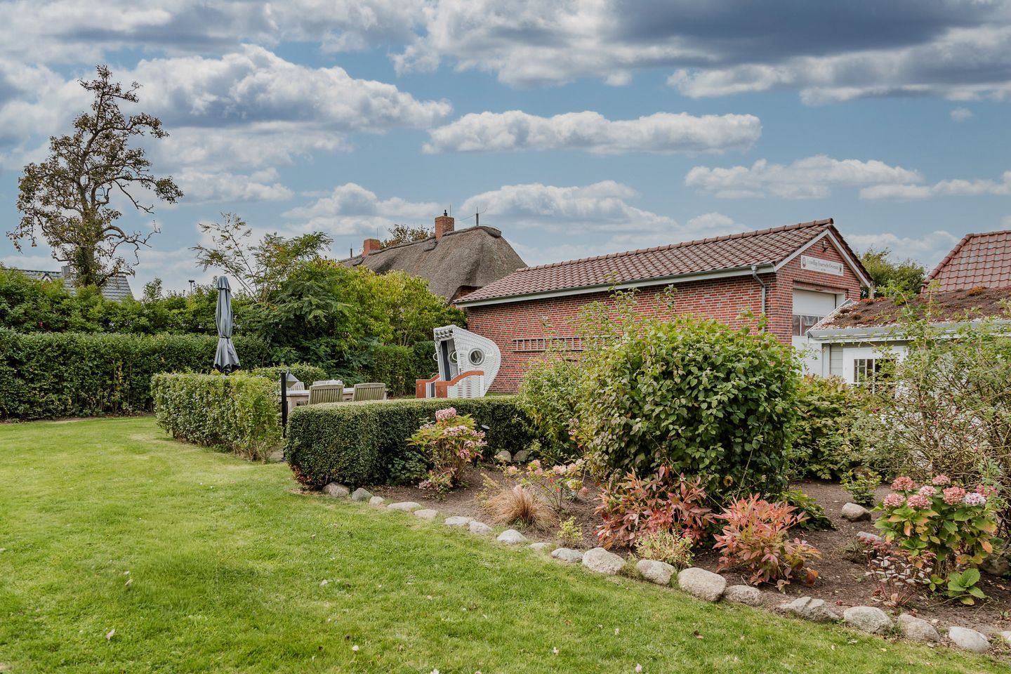 Das Schulmeisterhaus ist aufgeteilt in zwei Ferienwohnungen, die sich jeweils über das Erd- und Obergeschoss erstrecken. Links ist die Ferienwohnung Große Pause gelegen und rechts die Kleine Ferien. Ein wunderschöner Garten mit alten Obstbäumen, von denen Sie sich selbstverständlich bedienen können, rundet das Ambiente ab. Jeder Ferienwohnung ist ein eigener Terrassenplatz zugeordnet, welcher neben dem Gartenmobiliar auch über einen Sonnenschirm und einen eigenen Strandkorb verfügt. Auch ein eigener Wohnungs-PKW-Stellplatz ist direkt am Haus gegeben.