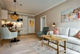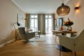 Der lichtdurchflutete Wohnbereich lädt zum Verweilen ein und hat einen direkten Zugang zum Balkon mit Südausrichtung. Hier scheint die Sonne zu fast jeder Tageszeit oder Sie lassen dort den Abend gemütlich ausklingen. Die hochwertige Loewe klang s3-Anlage sorgt für ein exklusives Klangerlebnis und verfügt über Digital-Radio, Bluetooth, CD-Player und USB-Anschlüsse. Die moderne Einrichtung und das großzügige Raumgefühl schaffen ein gemütliches Ambiente für entspannte Aufenthalte.