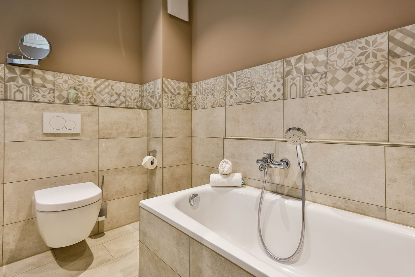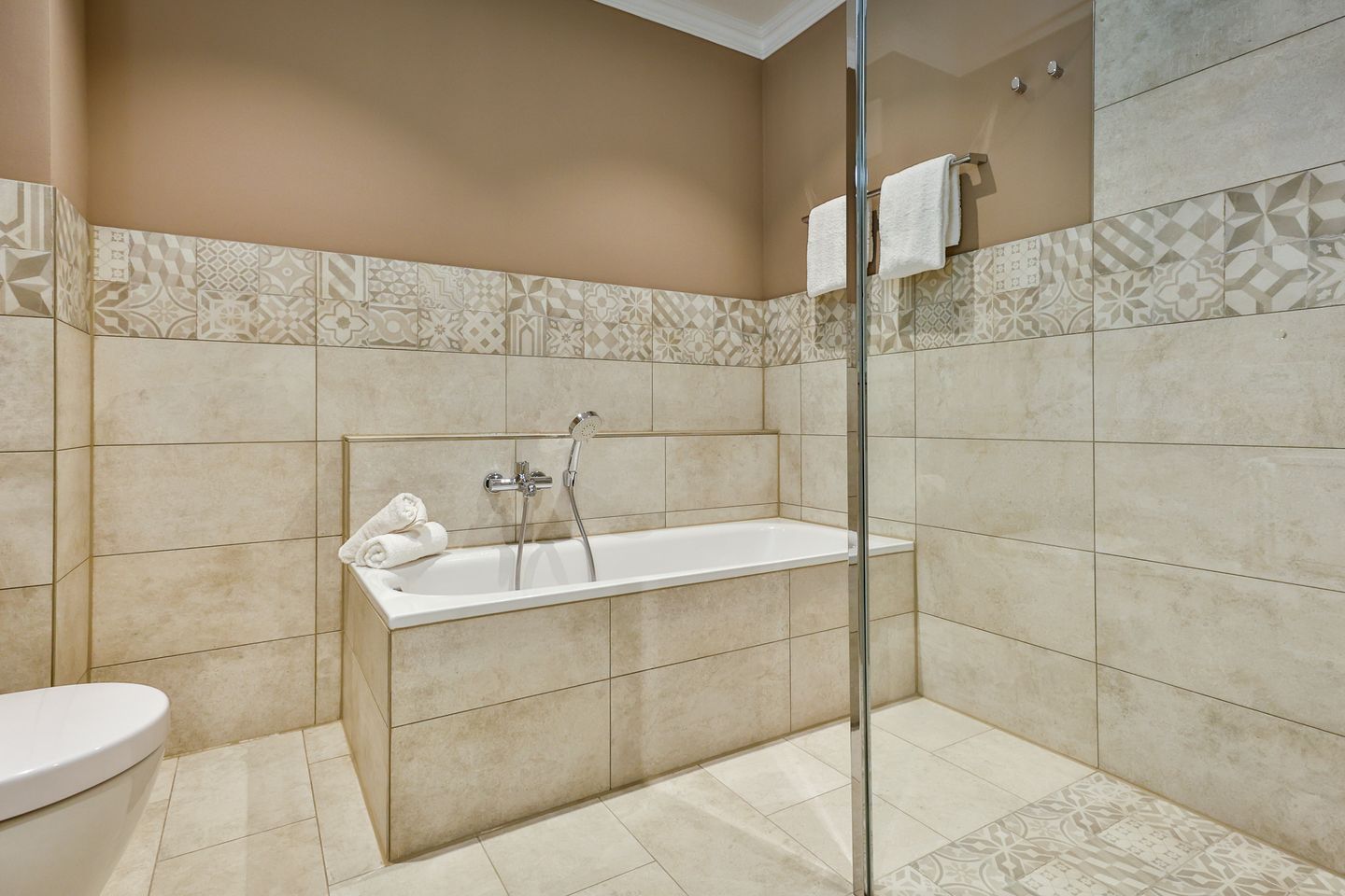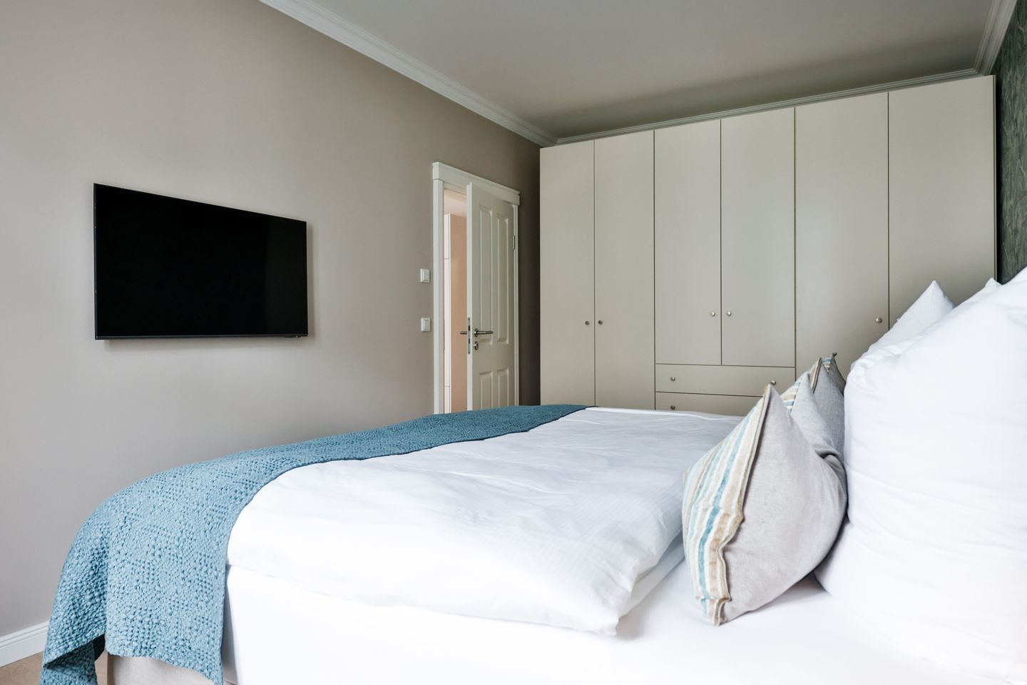 Das geschmackvoll eingerichtete Schlafzimmer ist mit einem Boxspringbett (180x200 cm) und TV ausgestattet und garantiert erholsame Nachtruhe. Im modernen Badezimmer finden Sie eine ebenerdige Dusche, eine Badewanne, WC und Fön, um den Tag entspannt beginnen und ausklingen zu lassen.