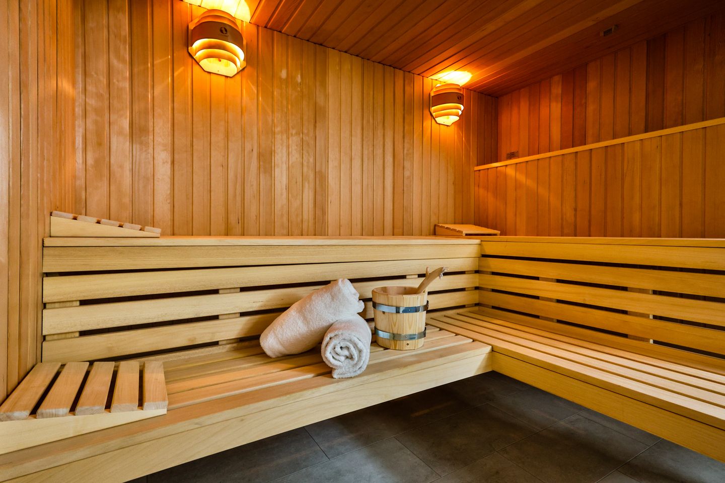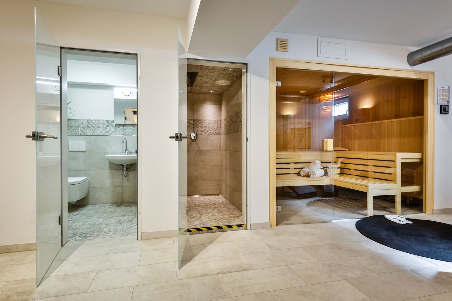 Der gemeinschaftliche Wellnessbereich im Untergeschoss steht Ihnen täglich zwischen 16:00 und 20:00 Uhr zur Verfügung und lädt mit Sauna und Ruhebereich zum Entspannen ein.