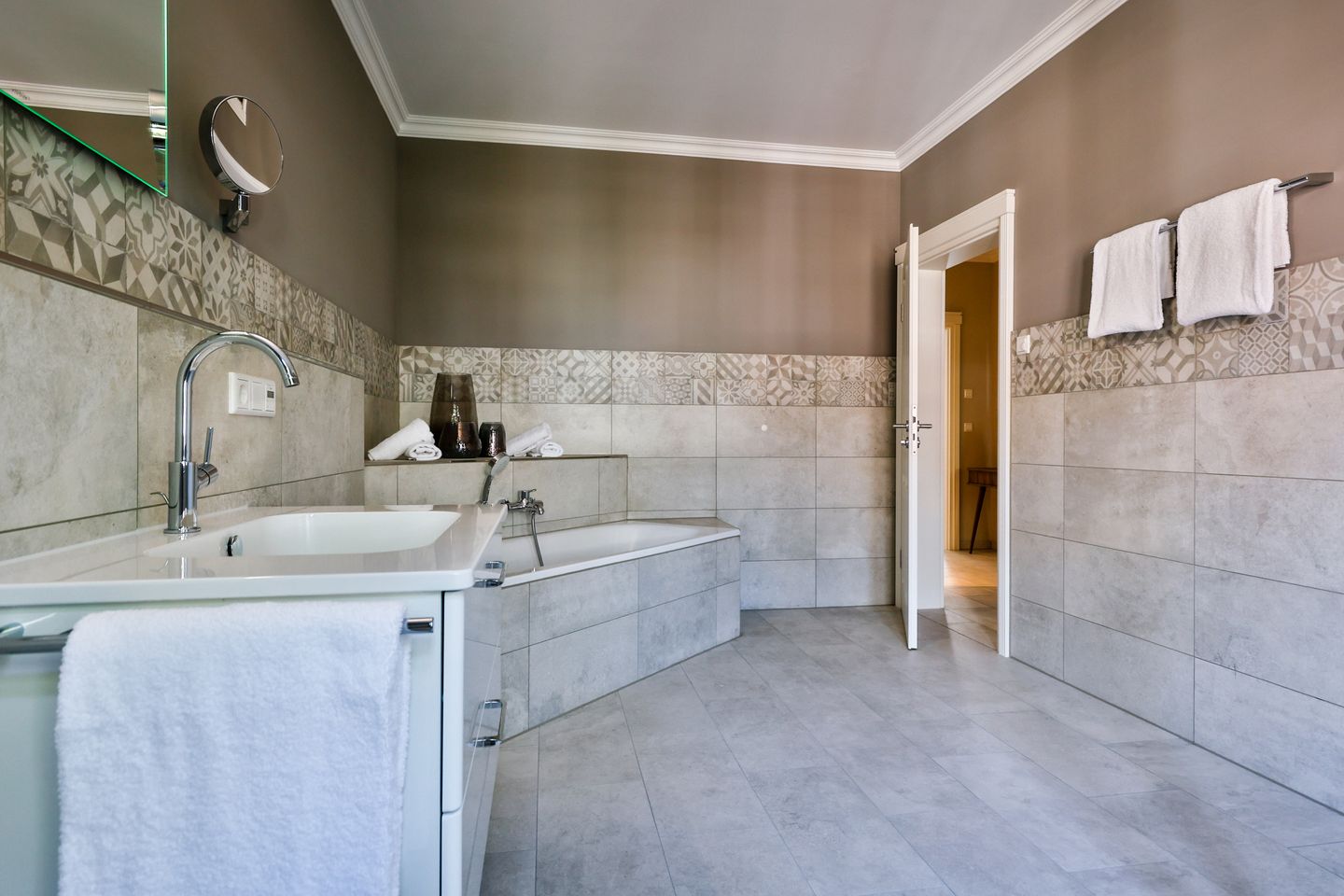 Beide Schlafzimmer sind sehr geschmackvoll eingerichtet und bieten höchsten Schlafkomfort in komfortablen Boxspringbetten (180x200 cm) sowie ein TV. Für die 5. Person kann eine weitere Schlafmöglichkeit durch ein Zustellbett geschaffen werden, was diese Wohnung auch für Familien ideal macht. Zwei moderne Badezimmer mit ebenerdigen Duschen, WC und Fön stehen Ihnen zur Verfügung, eines davon bietet zusätzlich eine Badewanne zum Entspannen und Wohlfühlen. Abgerundet wird der Bereich durch ein separates Gäste-WC.