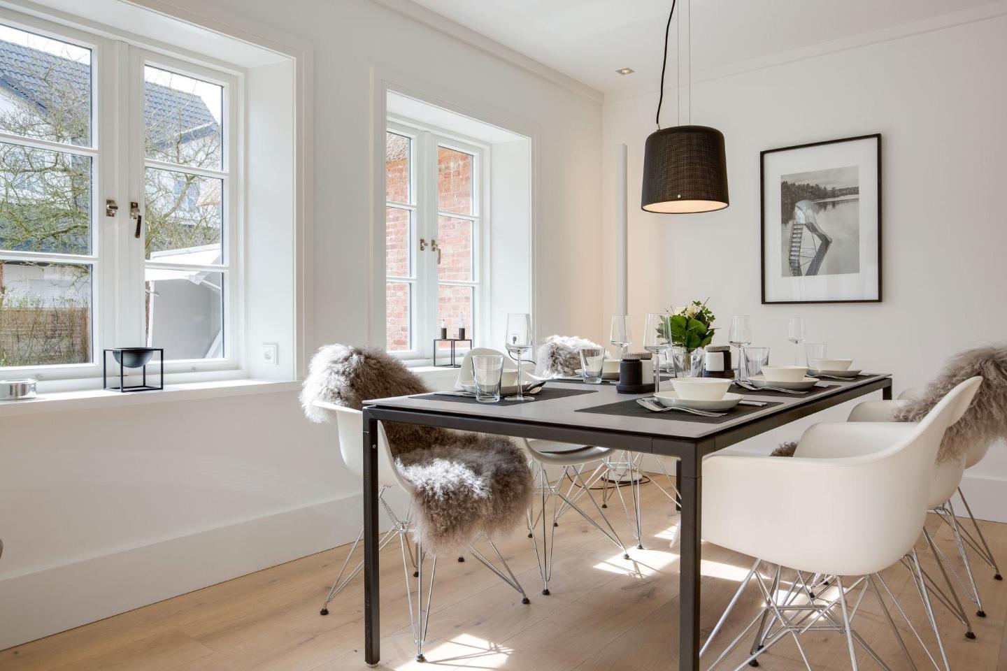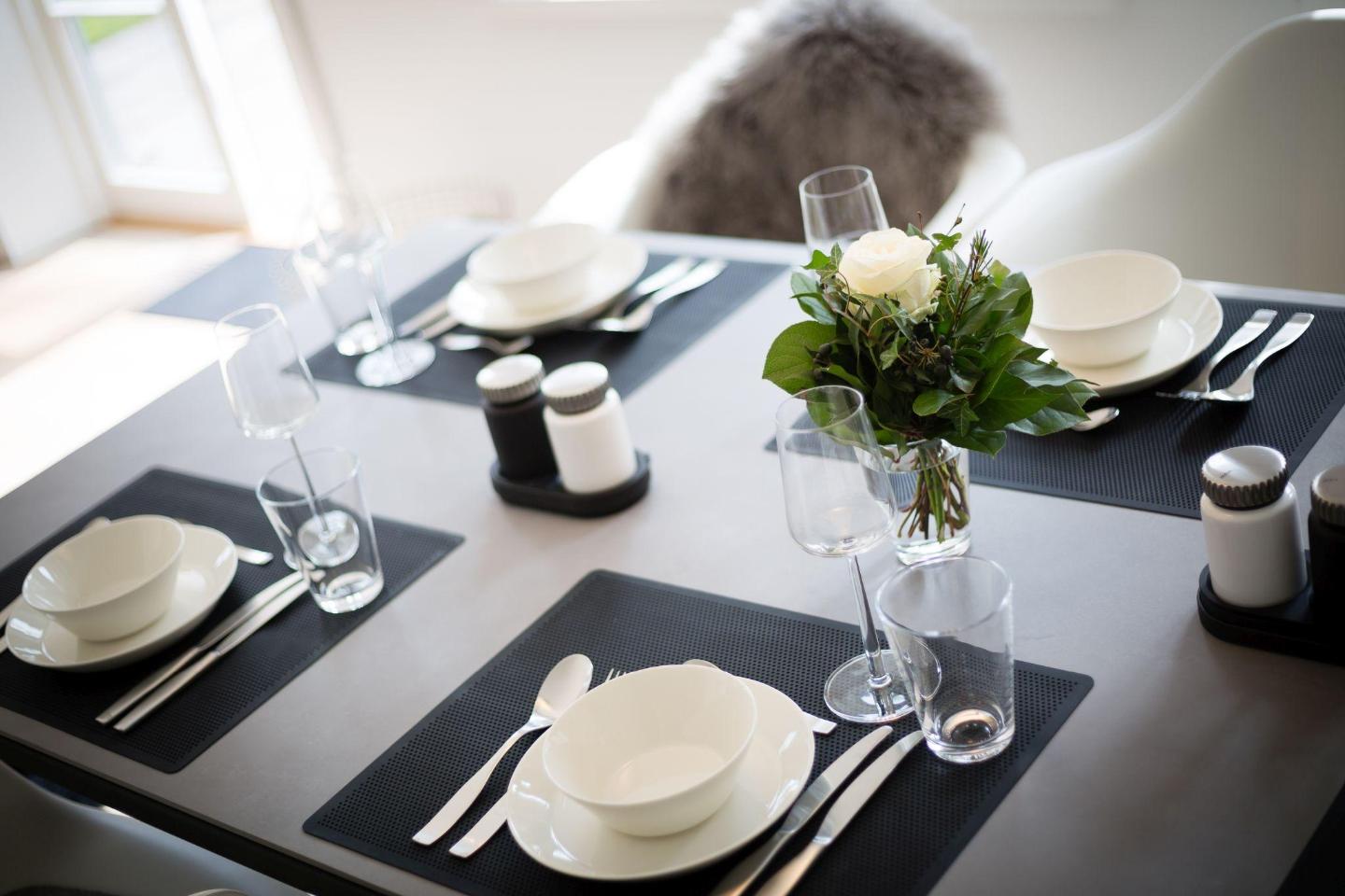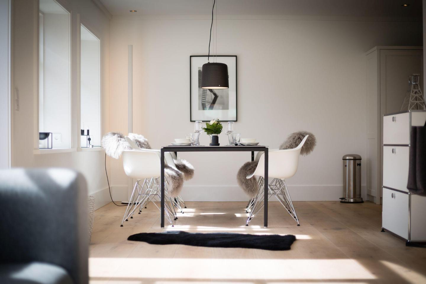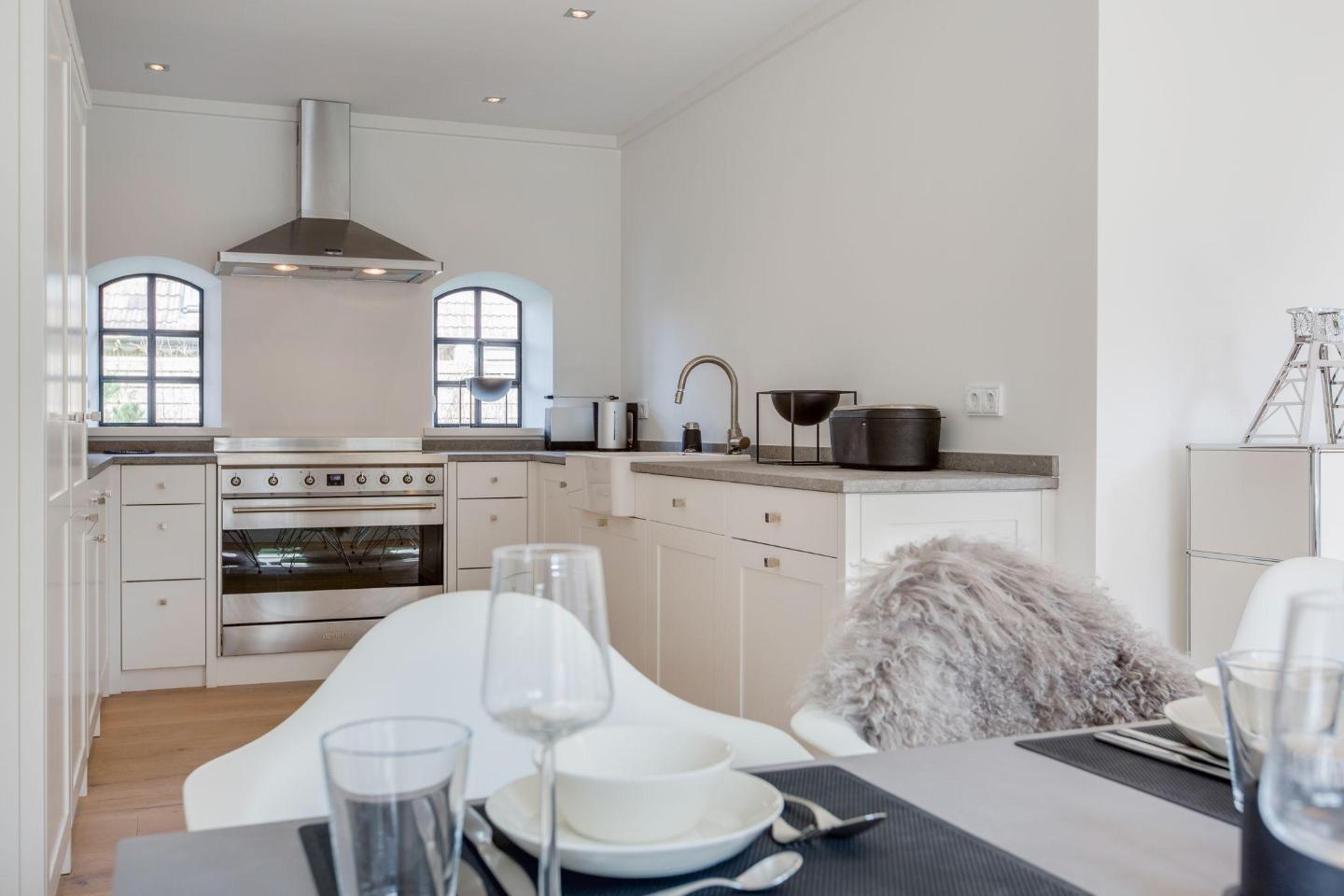 Die offene Wohnküche ist mit modernster Technik ausgestattet, darunter ein Induktionsherd, eine Filterkaffeemaschine und eine Nespresso-Maschine. Hier finden Sie alles, was Sie für die Zubereitung köstlicher Mahlzeiten benötigen. Am modernen Esstisch mit Platz für 6 Personen können Sie Ihre Mahlzeiten gemeinsam genießen oder einen gemütlichen Abend bei einem selbstgekochten Dinner verbringen.
