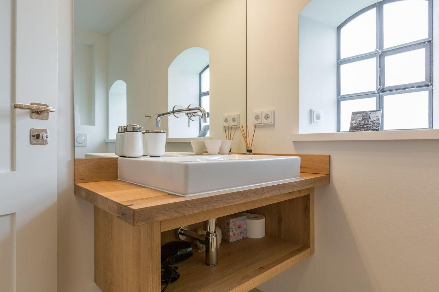 Die beiden modernen Badezimmer sind jeweils mit einer geräumigen Dusche, Fußbodenheizung und Tageslicht ausgestattet. Ein Föhn steht Ihnen ebenfalls zur Verfügung. Diese Badezimmer bieten Ihnen alles, was Sie für einen erholsamen Start in den Tag oder nach einem Strandtag zur Erfrischung benötigen.