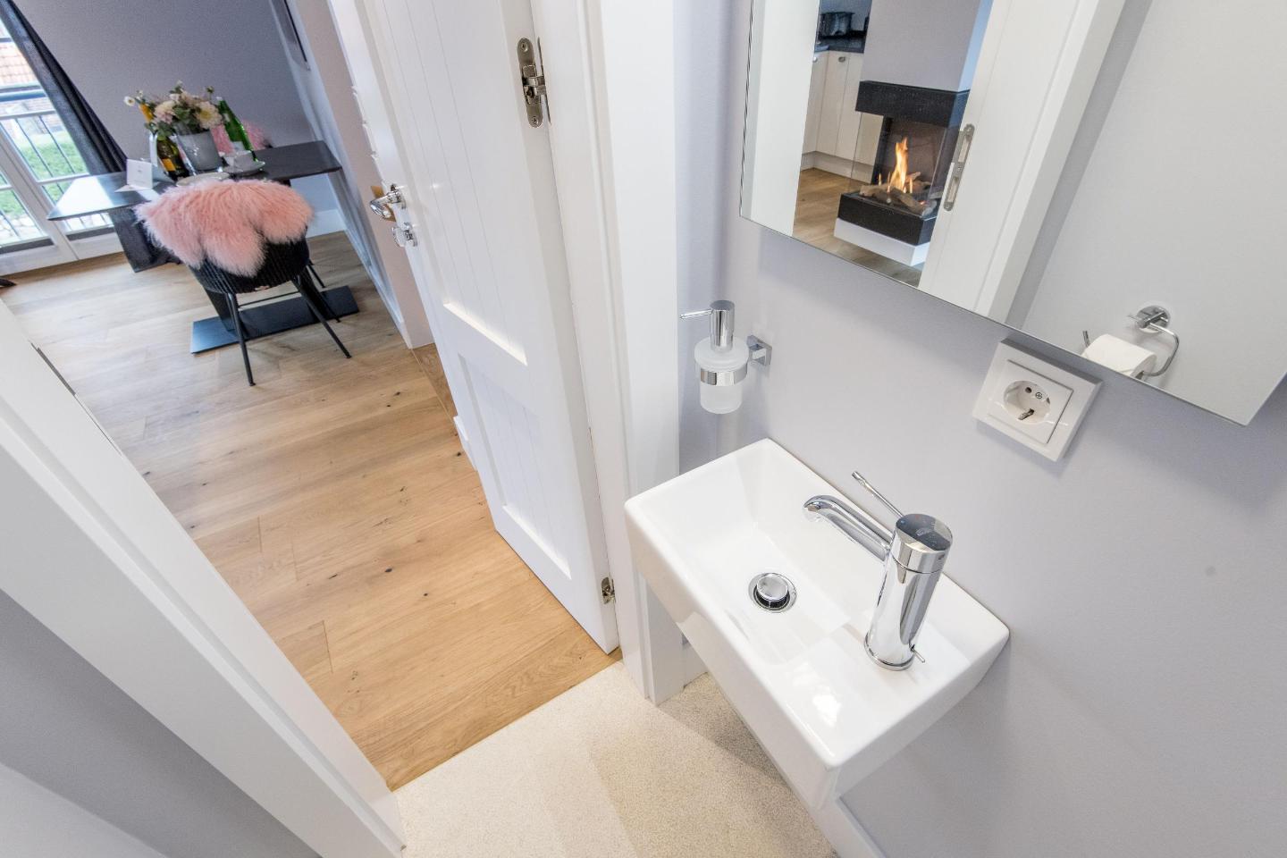 Das großzügige Badezimmer bietet sowohl eine Dampfdusche als auch eine Badewanne für luxuriöse Wellnessmomente. Ausgestattet mit WC, Föhn und Handtuchwärmer, sorgt es für einen angenehmen Start und Ausklang Ihres Urlaubstages.