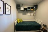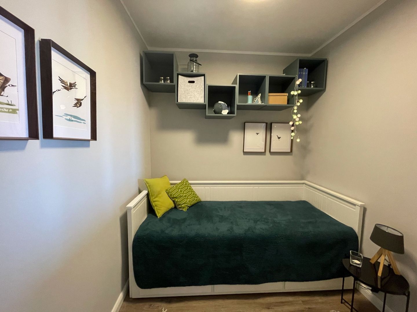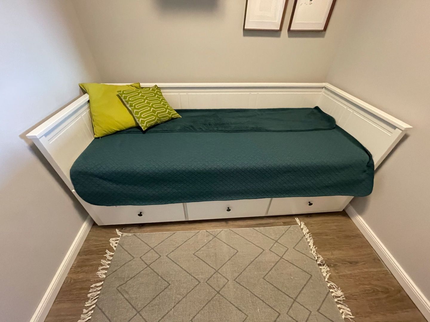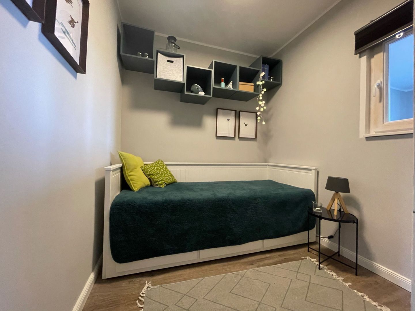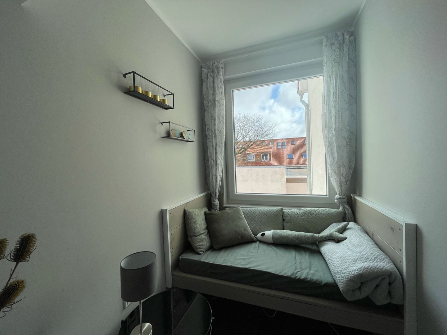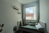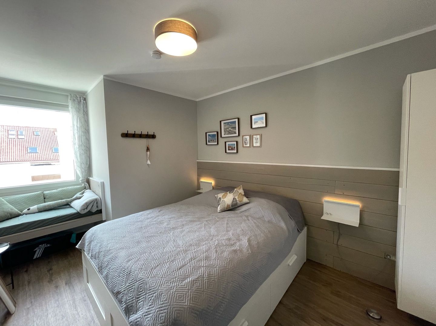 Kleines zweites Schlafzimmer mit Innenfenster zum Wohnraum und zur Terrasse, incl. einem Bett mit den Maßen (80x200 oder 160x200