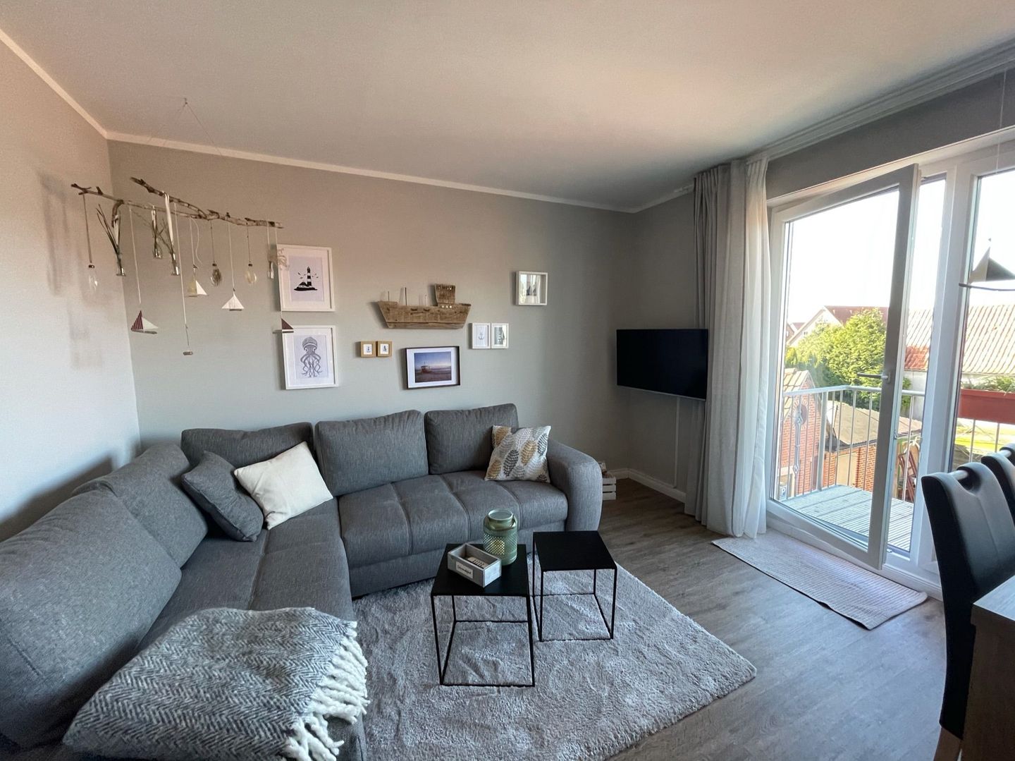Offener Wohn-/Essbereich mit Sat-TV, Ausgang zum Süd-West-Balkon,