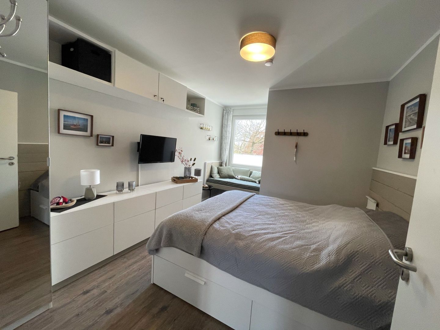 Ein Schlafzimmer mit Doppelbett 1,80x2,00m, in Komforthöhe