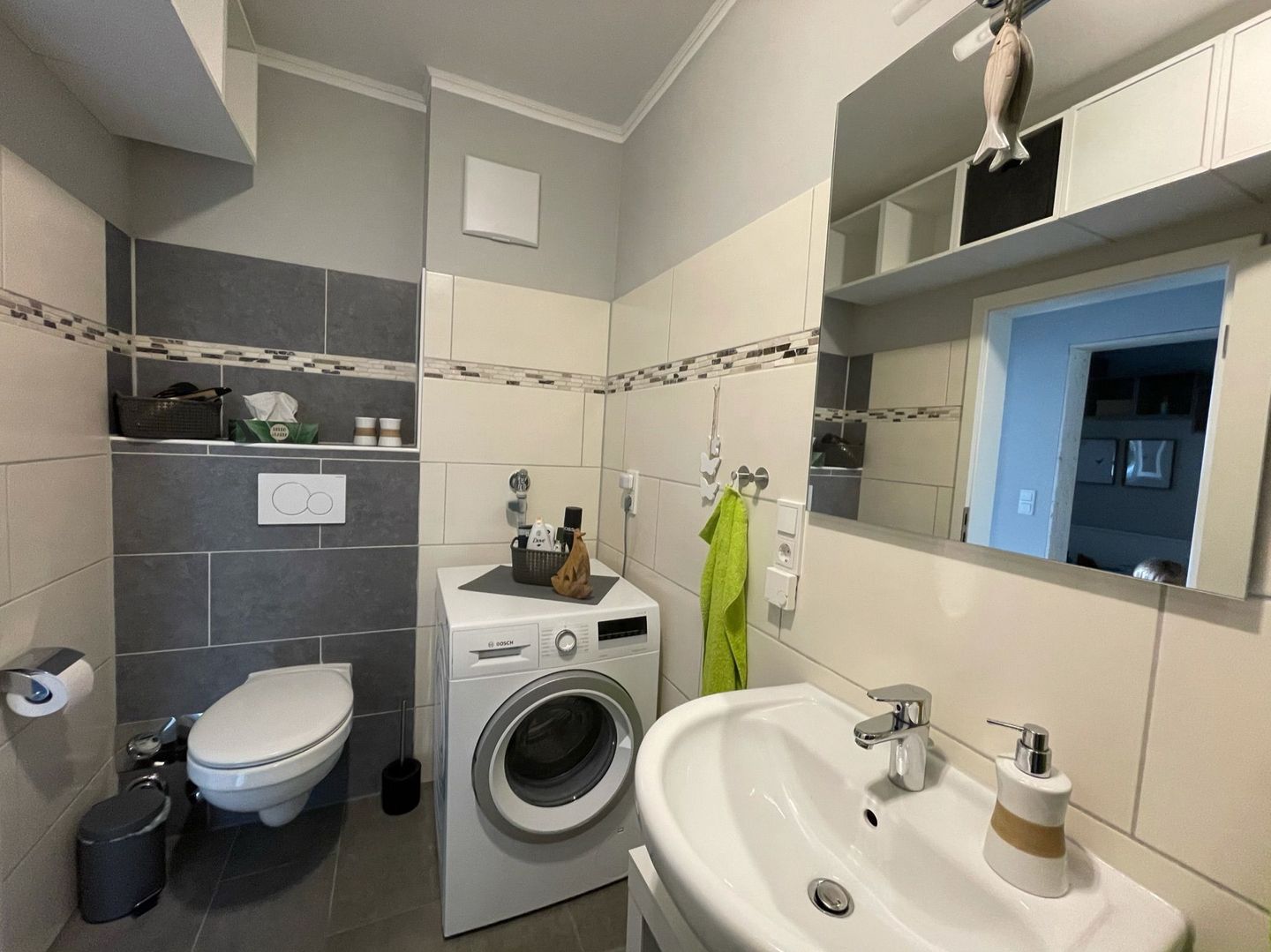 Bad mit ebenerdiger Dusche (inkl. Duschsitz) und WC.