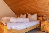 Obergeschoss: 1 Schlafzimmer mit Doppelbett, Kinderreisebett und Sitzecke