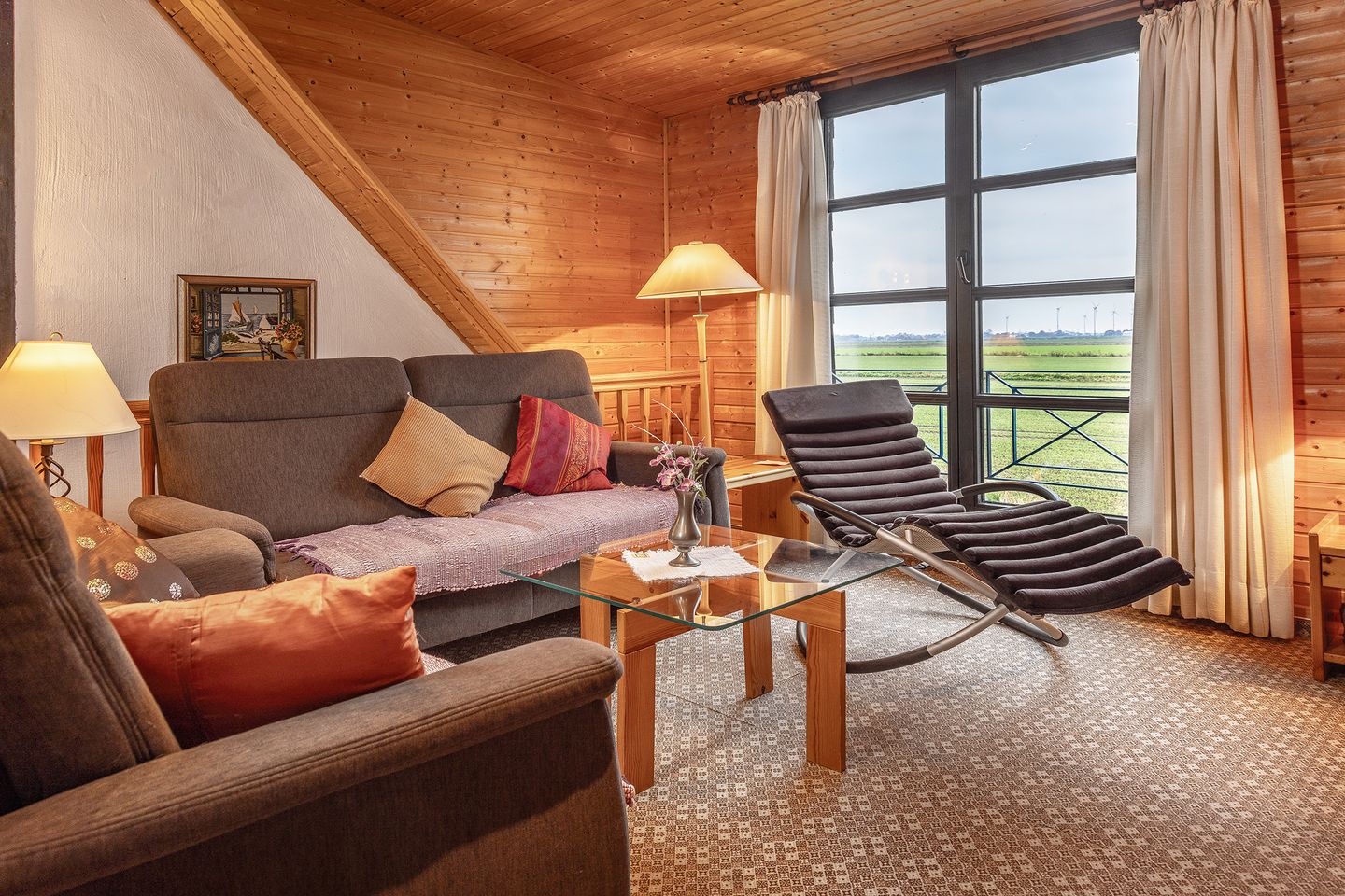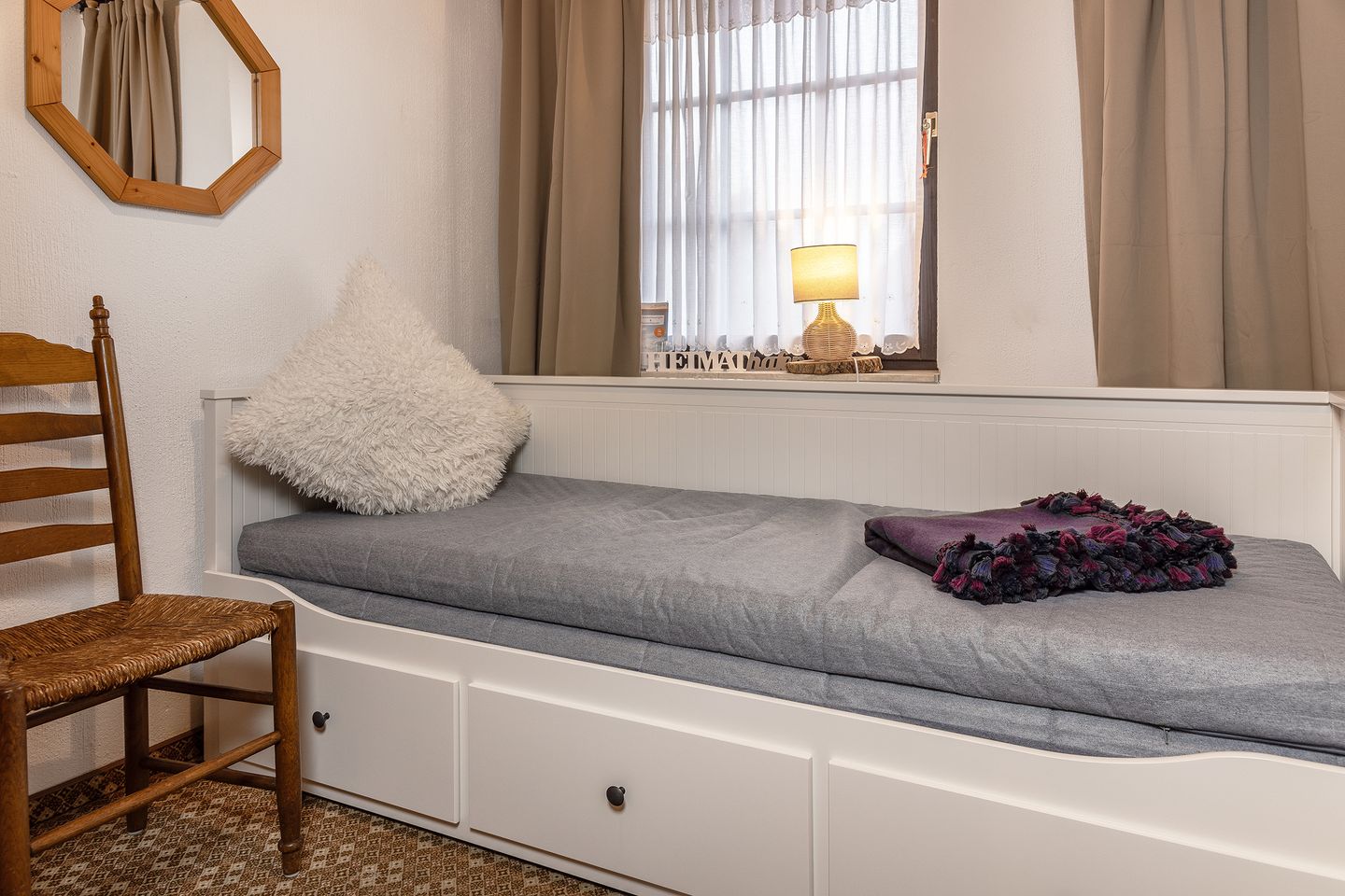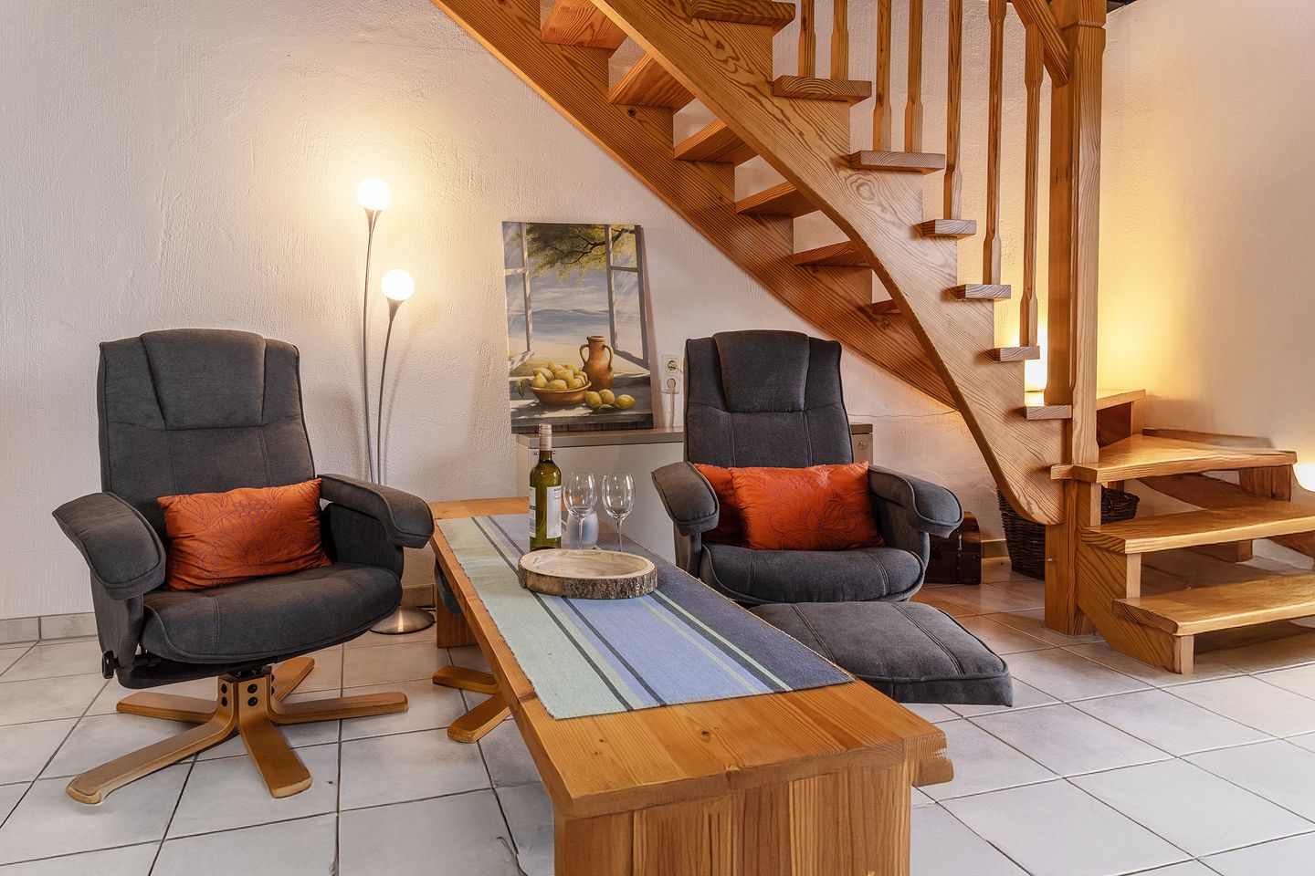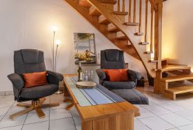 Weiterhin befindet sich im Erdgeschoss der Ferienwohnung ein Gästezimmer mit zwei Schlafsesseln und eine Dusche mit WC.