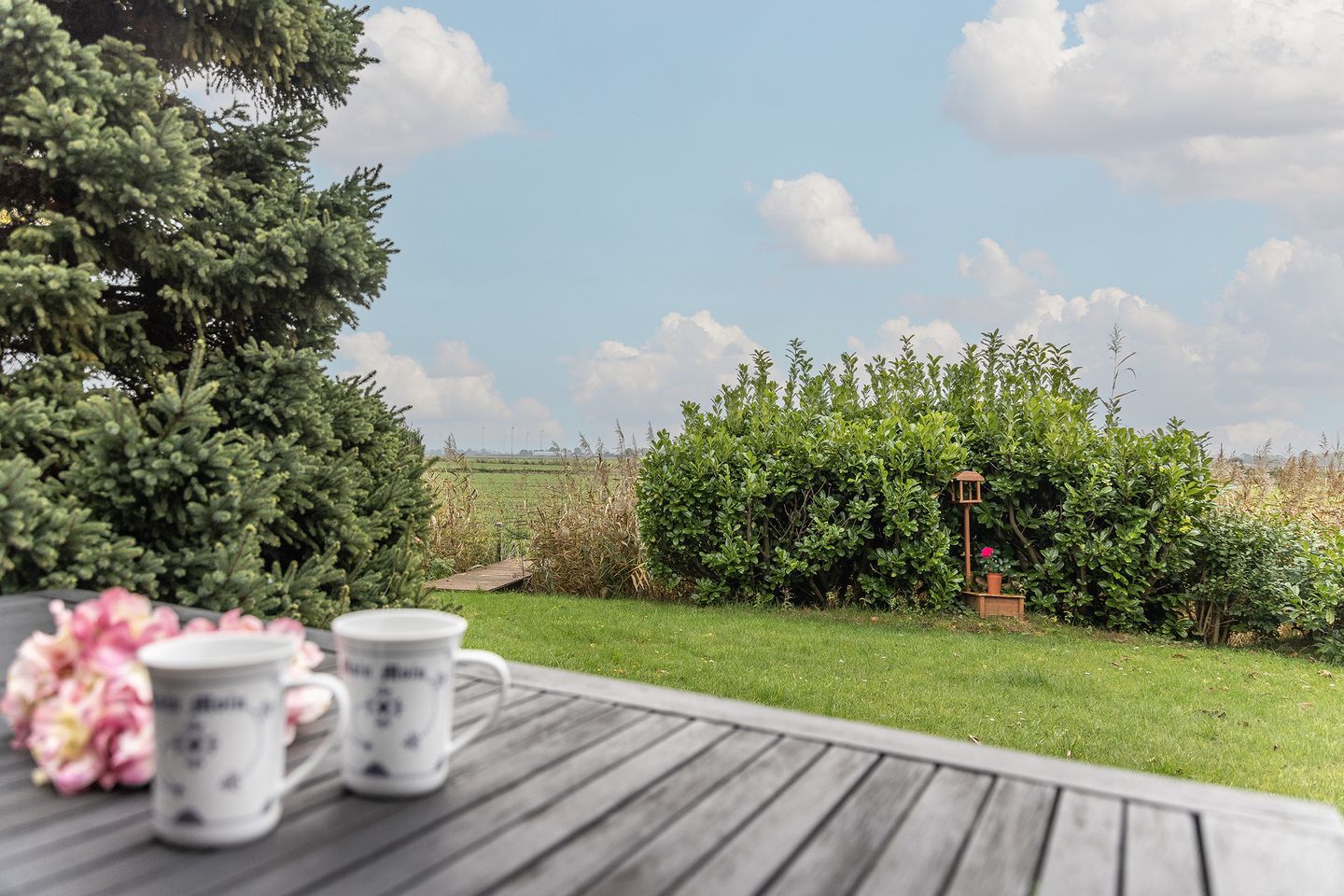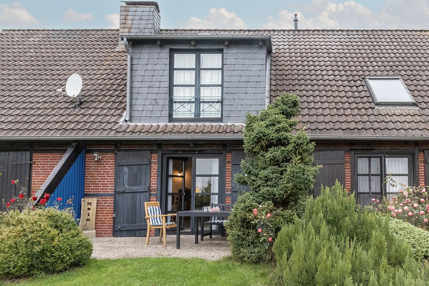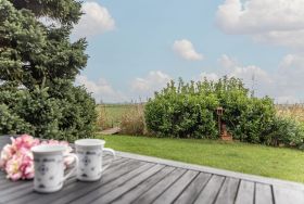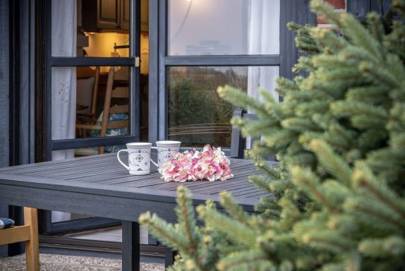 Bei schönem Wetter sitzen Sie im Garten und können gerne den Elektrogrill benutzen. Neben dem Ferienhaus steht ein Parkplatz zur Verfügung.