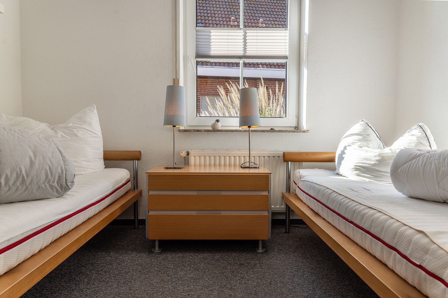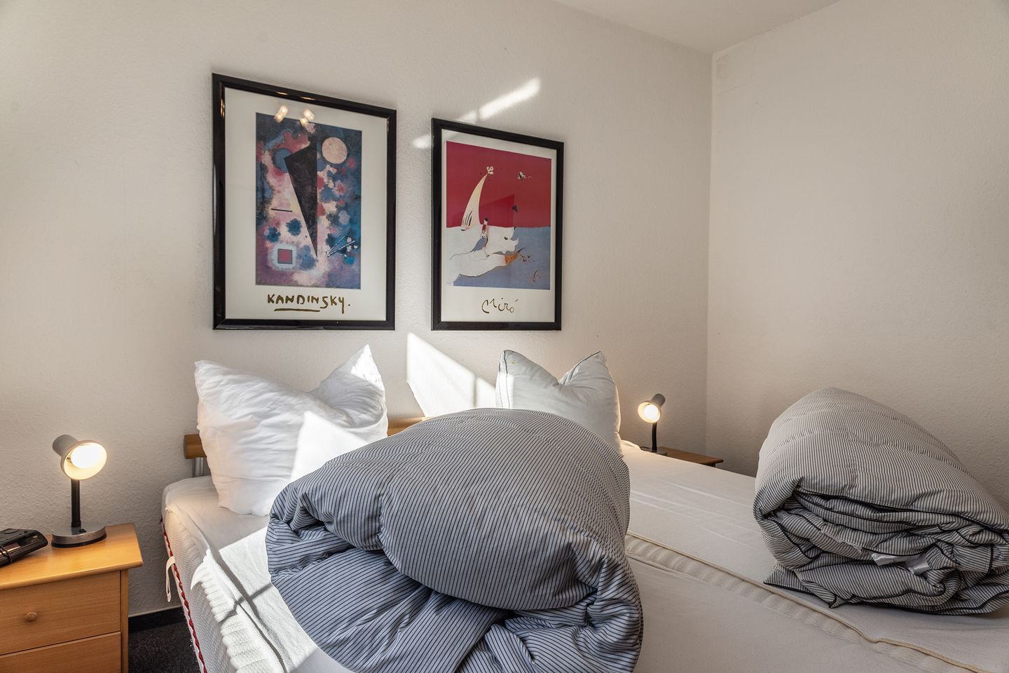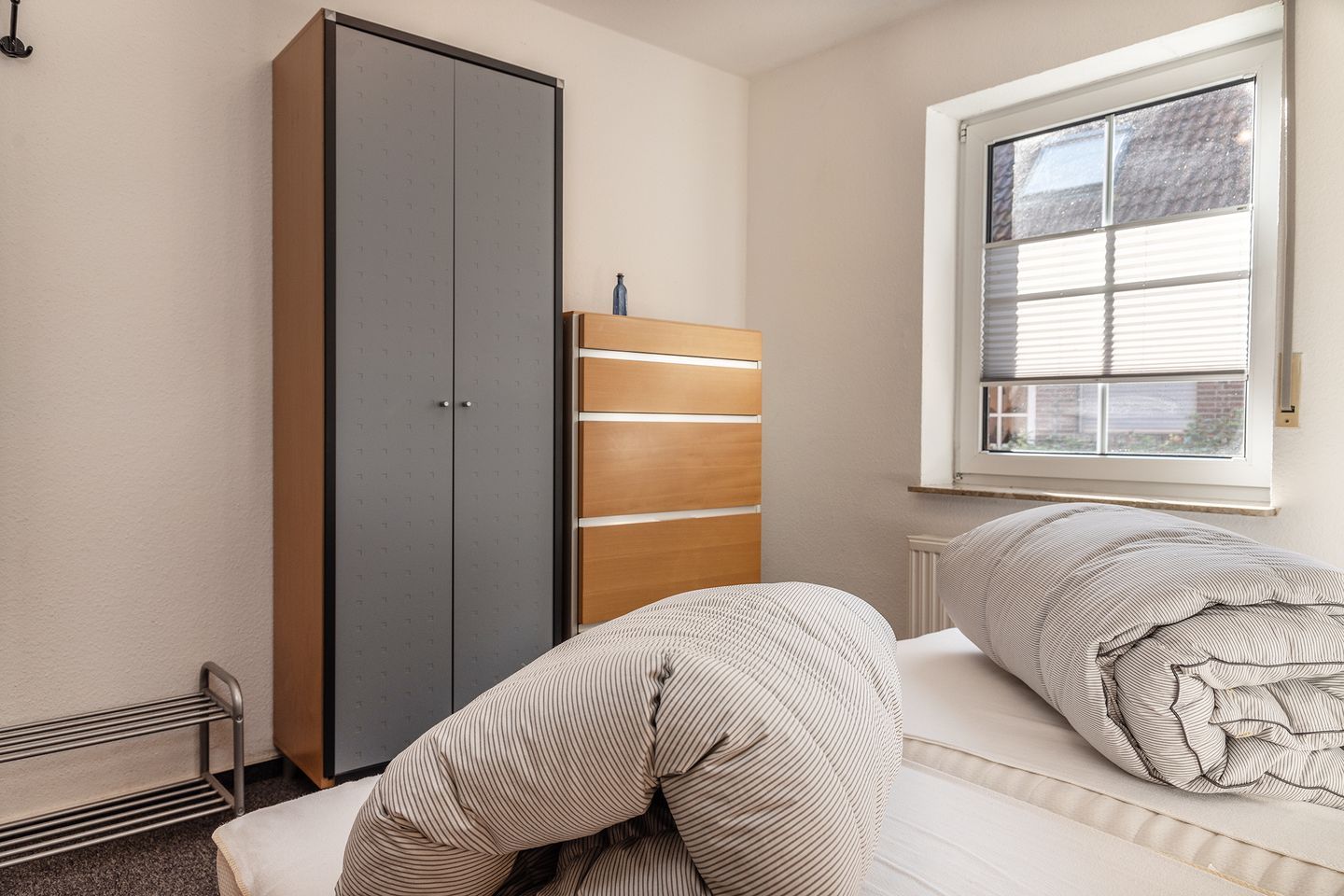 1 Schlafzimmer mit Doppelbett (durchgehende Matratze), 1 Schlafzimmer mit 2 Einzelbetten und zustellbarem Kinderreisebett