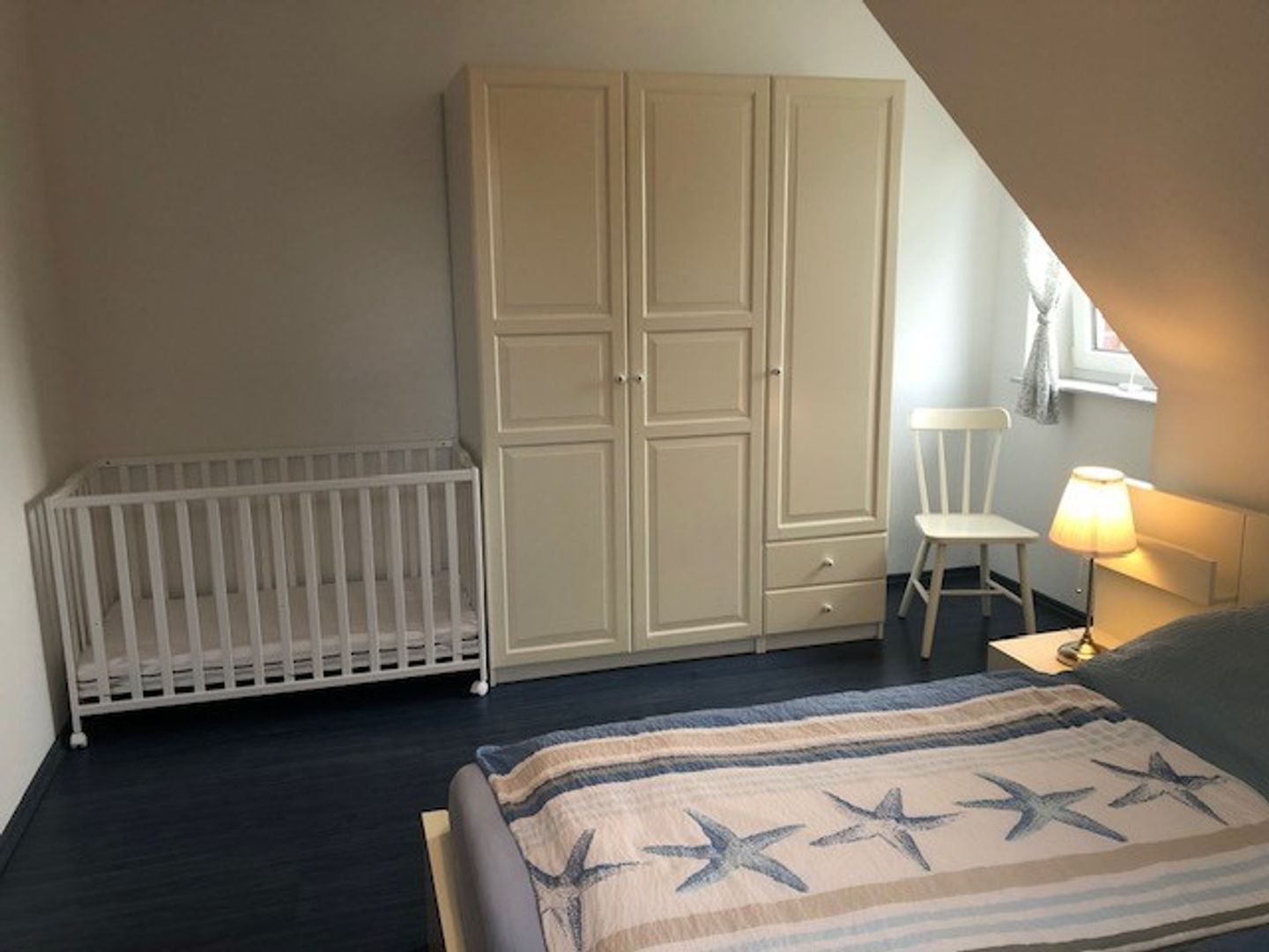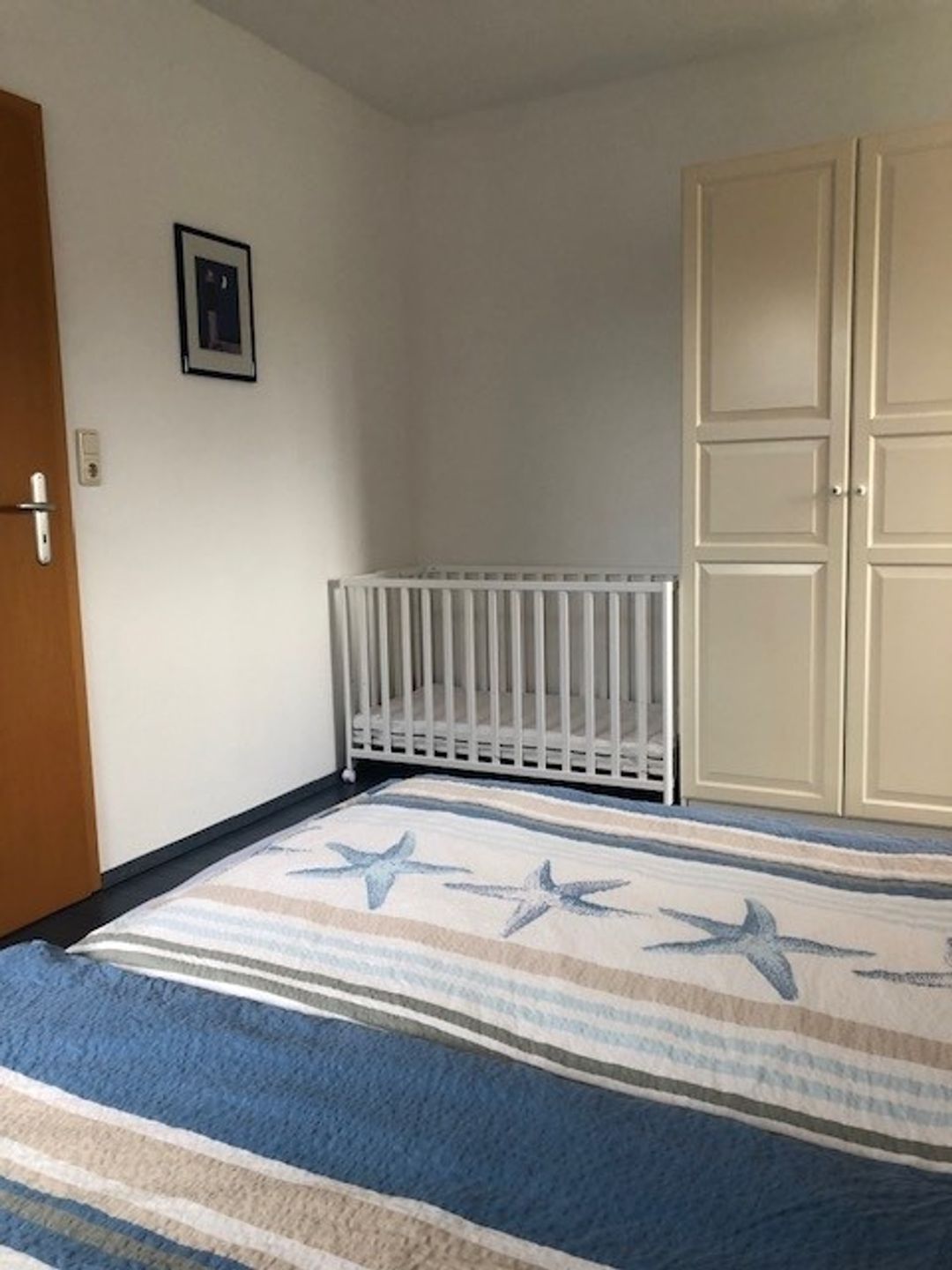 1 Schlafzimmer mit Doppelbett, 1 Schlafzimmer mit 2 Einzelbetten, zustellbares Kinderbett, Latexmatratzen, allergikerfreundliches Bettzeug, Bad (Fußbodenheizung) mit Dusche und WC.