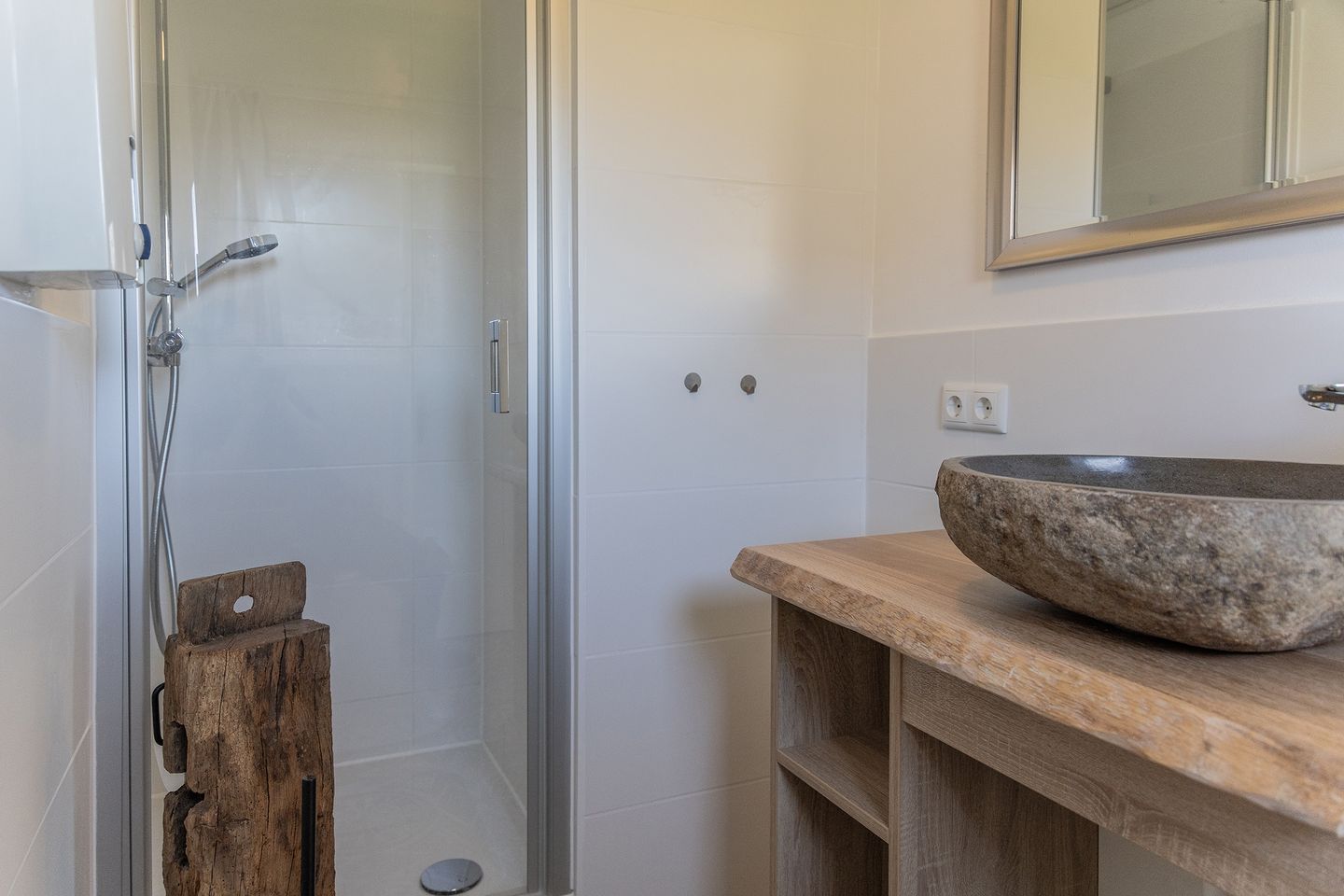 Gemütliches Wohnzimmer mit Essplatz, Sat- TV, Radio, Ausgang zur Terrasse und zum Garten. Separate Küche, Bad mit Dusche und WC.