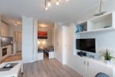 Die Ferienwohnung ist gemütlich ausgestattet mit Kabelfernsehen, Bad (Dusche/WC), Küchenzeile mit Backofen, Cerankochfeld, Geschirrspüler und einem Balkon.