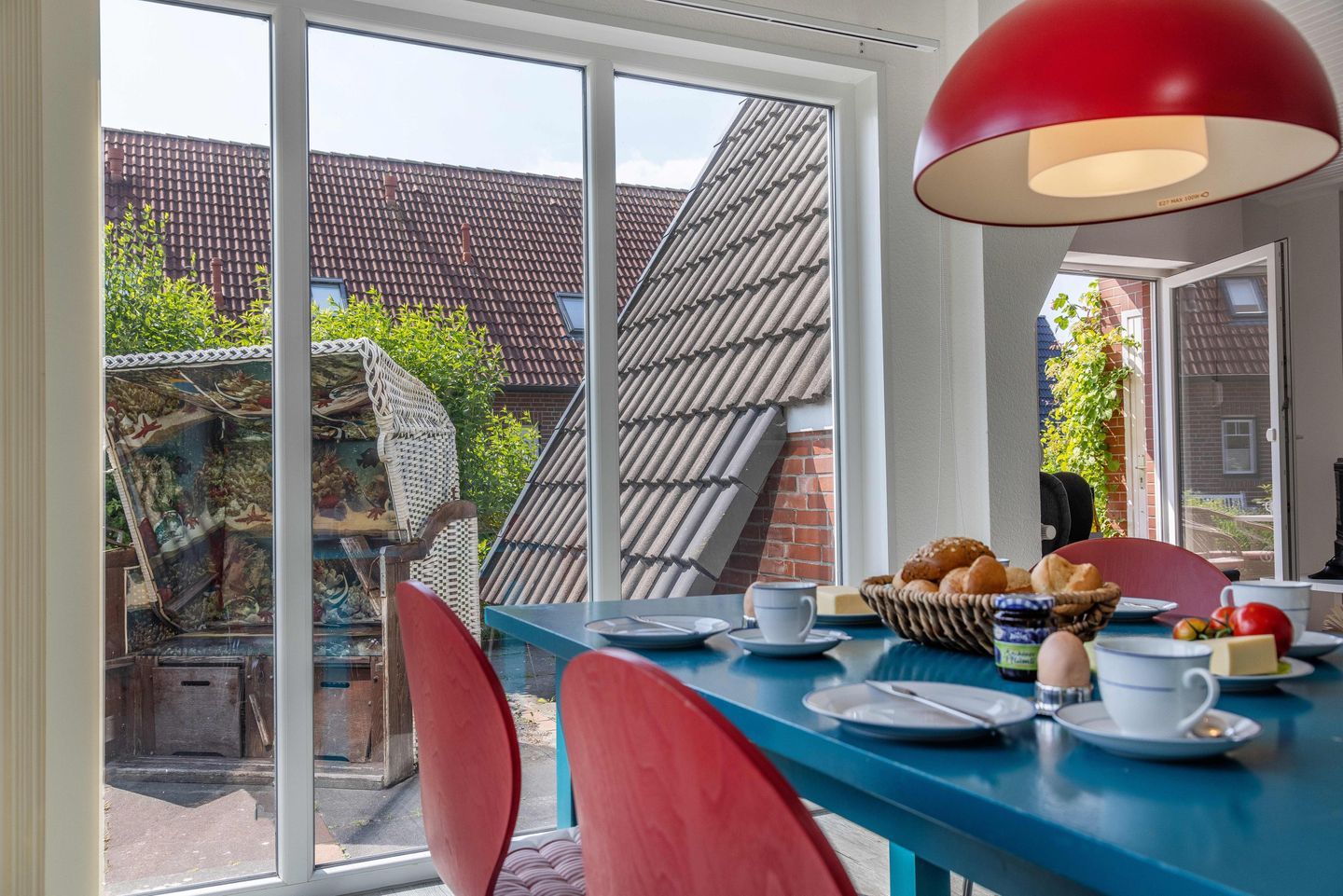 Im Garten steht ein Holzhaus, in dem unsere Gäste gern ihre Fahrräder abstellen können. Dort finden Sie auch Sonnenliegen und einen Bollerwagen für die Kleinen, ein beliebtes Transportmittel, um an den Strand zu kommen.