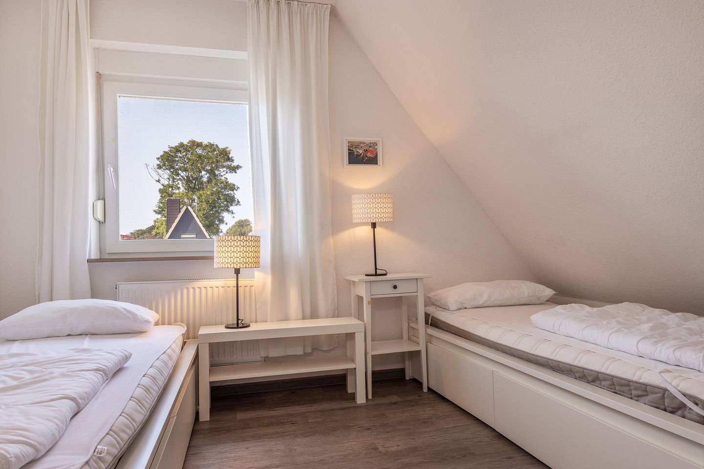 Beide Schlafzimmer haben gemütliche Dachschrägen und sind sehr hell.