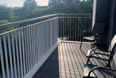 Ein großzügiger, möblierter und überdachter, nach Süden zum Wasserlauf ausgerichteter Balkon lädt zum Verweilen ein.
