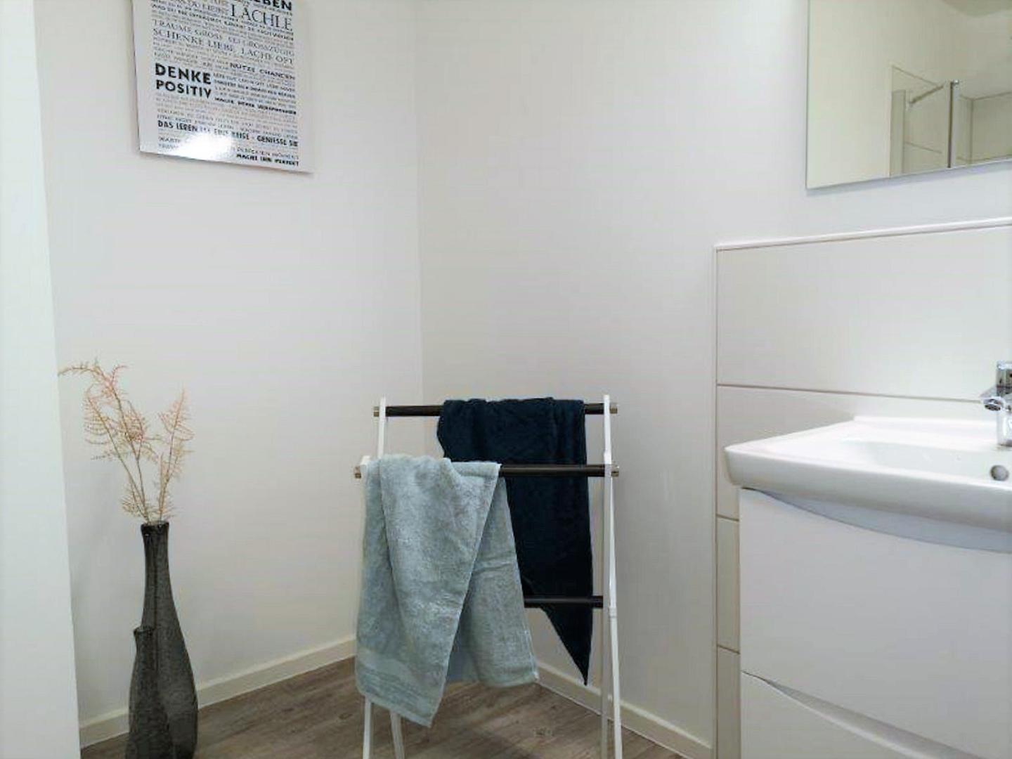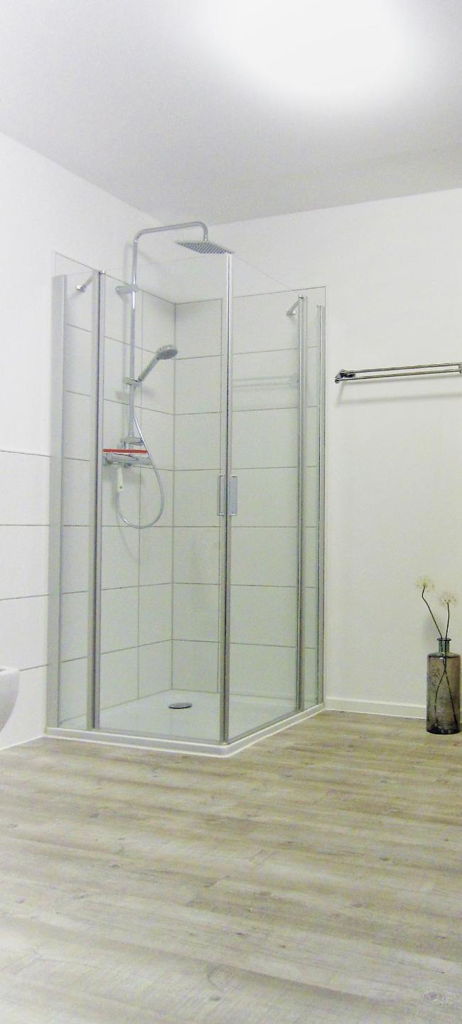 Das Duschbad ist großzügig und modern. Eine Infrarotsauna rundet die Ausstattung ab.