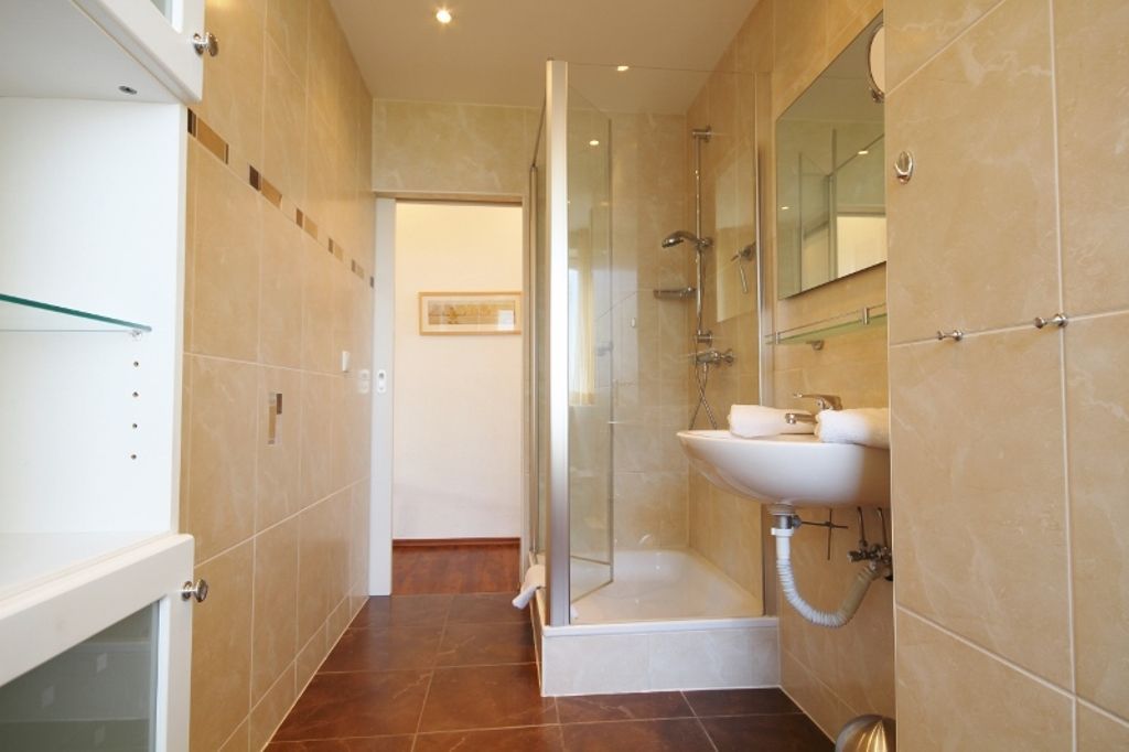 Die 3 Raum Wohnung mit einer Größe von ca. 75 m² Wohnfläche ist komplett bis zu 4 Personen ausgestattet. 1 Schlafzimmer mit Doppelbett, 2. Schlafzimmer mit Doppelbett (1,60mx2,00m), Wohnzimmer mit Einbauküche (Cerankochfeld, Backofen, Geschirrspüler, Kühlschrank), 1 SAT-TV, 1 großer Balkon (Nord, mit direkter Seesicht ), Schwimmbad im Haus, Fahrstuhl, PKW-Stellplatz direkt vor dem Haus. Keine Haustiere erlaubt, Nichtraucher.