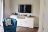 Im hinteren Bereich, zur Terrasse gelegen, steht eine gemütliche Sofaecke mit Fernseher zur Verfügung.