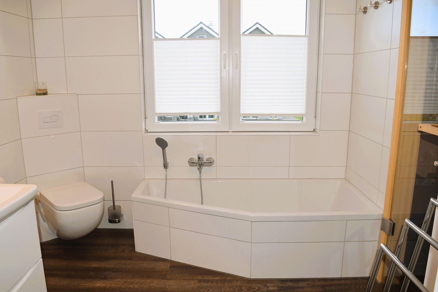 An stürmischen und/oder regnerischen Tagen kann das Badezimmer mit seiner Vollausstattung zum Wellnesstempel werden.